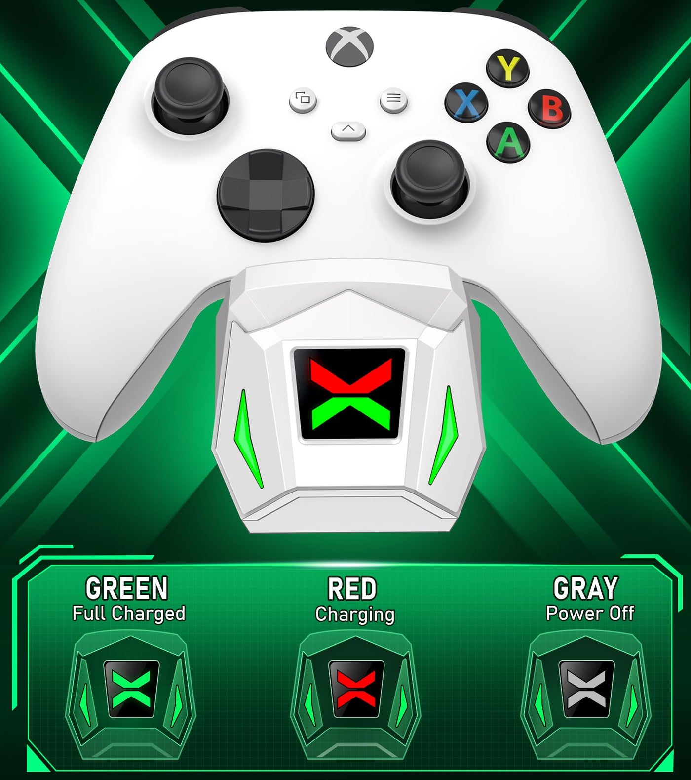 Charging Station Dock For Xbox One Rechargeable Battery Pack With 2X5520Mwh Batteries Compatiblity: For Xbox Series X, Xbox Series S Controller For Xbox One, Xbox One X, Xbox One S, Xbox One Elite Controller Features: 1. High Speed Charging Dock With 2X5520Mwh Rechargeable Battery Pack For Xbox One 2. 4-5Hrs High Speed Charging And 20-25Hrs Long Time Play 3. Rechargeable Up To 2000 Times, Long Battery Life 4. Wide Compatibility, Suits For All Your Xbox One/Series Controller 5. Wireless Controller Charger, Easy To Use, Just Drop Then Start Charging 6. Cool X Shape Led Indicator To Tell You The Charging Status Specification: Input Voltage: Dc 5V/1A Charging Time: 4-5Hrs Playing Time: 20-25Hrs Battery Pack Capacity: 2 X 2550Mah Battery Charging Times: Over 2000 Times Note: 1. Please Note The Batteries On The Bottom Of The Station 2.Please Use The Batteries Included For The Charging Station To Get A Better Using Performance And Protect Your Controller. 3. After Installing The Battery On The Xbox Controller, Please Do Not Touch The Metal Part Of The Battery With Other Metals Except The Charging Slot On The Station. Package Including: 2X5520Mwh Rechargeable Battery Packs 1 X Controller Charger Station 1 X Type-C Charging Cable 4 X Battery Back Cover 1 X User Manual