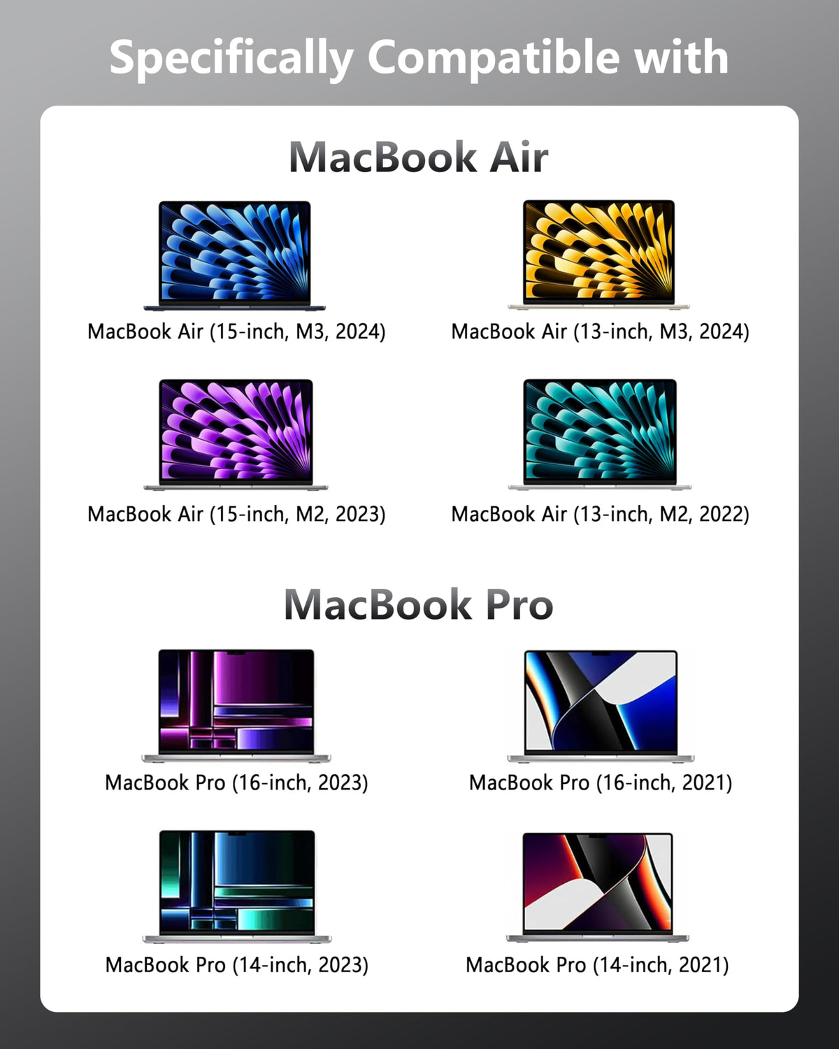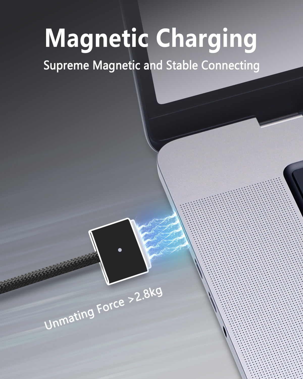 1. This Cable Is Specifically Made For Fast Charging Macbooks: Macbook Pro 14-Inch 2021/2023, Macbook Pro 16-Inch 2021/2023, Macbook Air 13/15-Inch M3 2024, Macbook Air 15-Inch M2 2023, Macbook Air 13-Inch M2 2022. 2. You Can Have Your Macbook Fast Charged With This Magnetic Cable And Power Adapter With Charging Power With 96W And 140W. 3. The Magnetism Design Of One End Will Direct The Cable To Plug To The Charging Port Automatically, And The Strong Magnetism Enables The Charging Fast And Stable. 4. It Is A Good Backup Charging Cable When You Leave Your Original Cable At Home Or Office. 5. The Cable Is 6.6Ft In Length And 1.8 Ounce In Net Weight. It Could Reach Anywhere You Need From The Power Source And Meet Almost All Charging Situations.