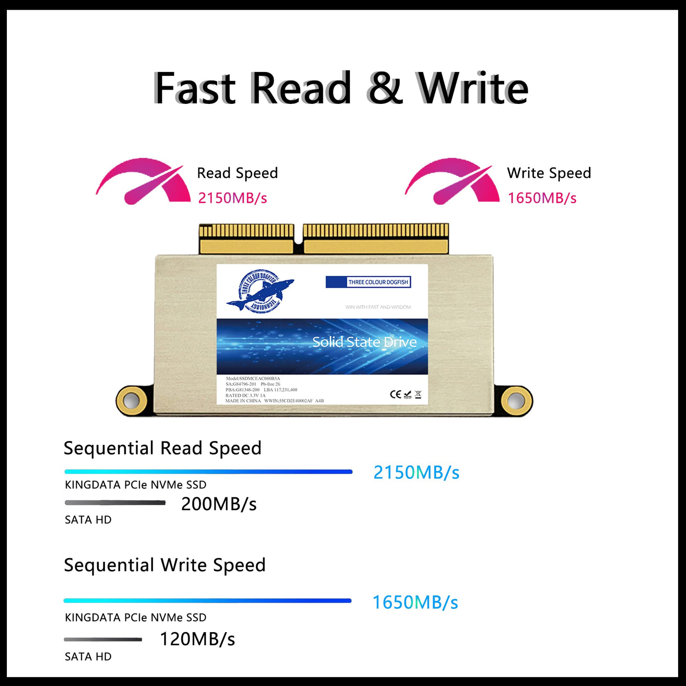 Dogfish 1Tb Ssd For Macbook Nvme Pcie Gen3X4 M.2, Internal Solid State Drive Upgrade For Macbook Pro A1708 (2016 2017)