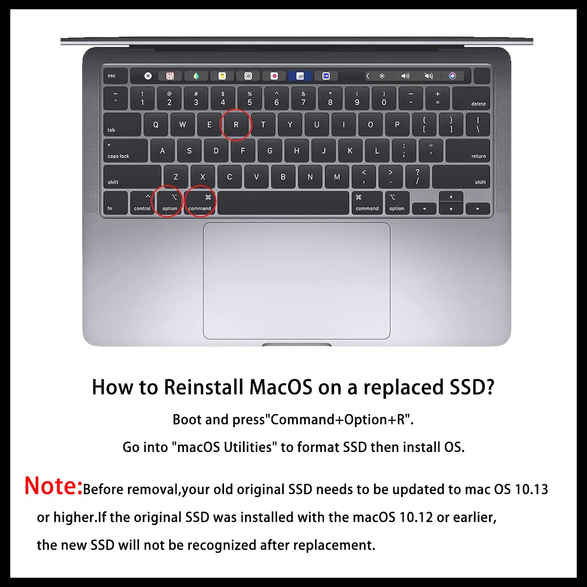 Q: How do I install the Dogfish NVMe SSD in my MacBook?A: To install the Dogfish NVMe SSD, first back up your original data to a USB drive. Ensure your current SSD is updated to macOS 10.13 High Sierra or later. You can then follow installation methods such as using Time Machine Backup, creating a USB installer, or utilizing Internet Recovery. Remember to format the new SSD before restoring macOS.