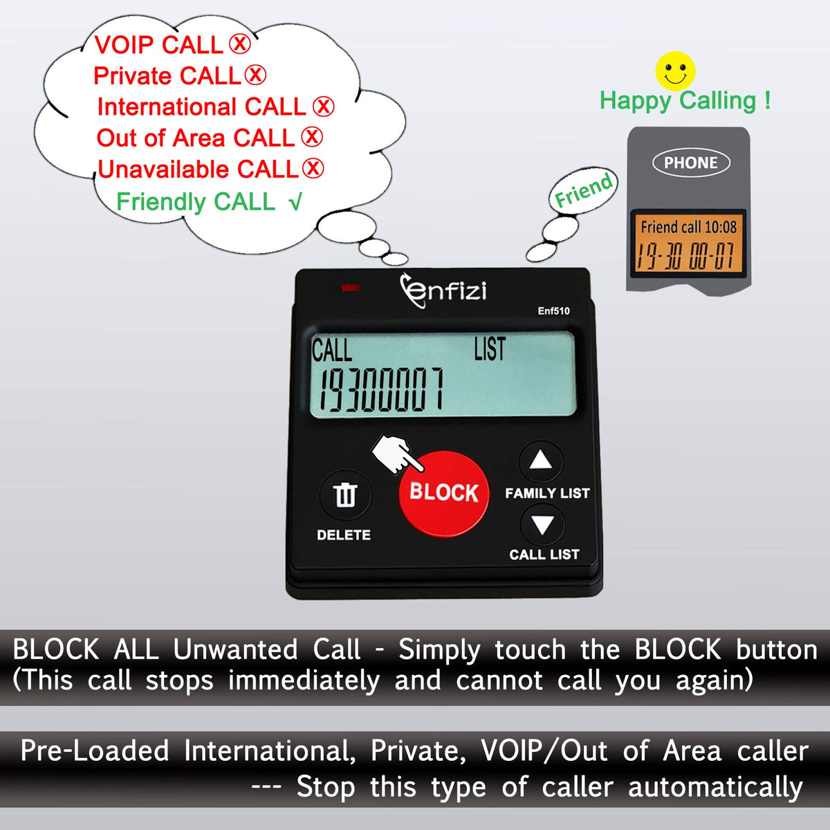 ? Enfizi Enf510 Call Blocker --- Your Landline Guard ? Enfizi Enf510 Call Blocker --- A New Generation Of Call Blocker That Have Been Continuously Improved And Upgraded After 13 Years. ? Enfizi Enf510 Call Blocker --- Stop All Unwanted Calls --- Simply Touch The Block Button (This Call Stops Immediately And Cannot Call You Again) ? Cost-Effective Enf510 Call Blocker Is Worth Having