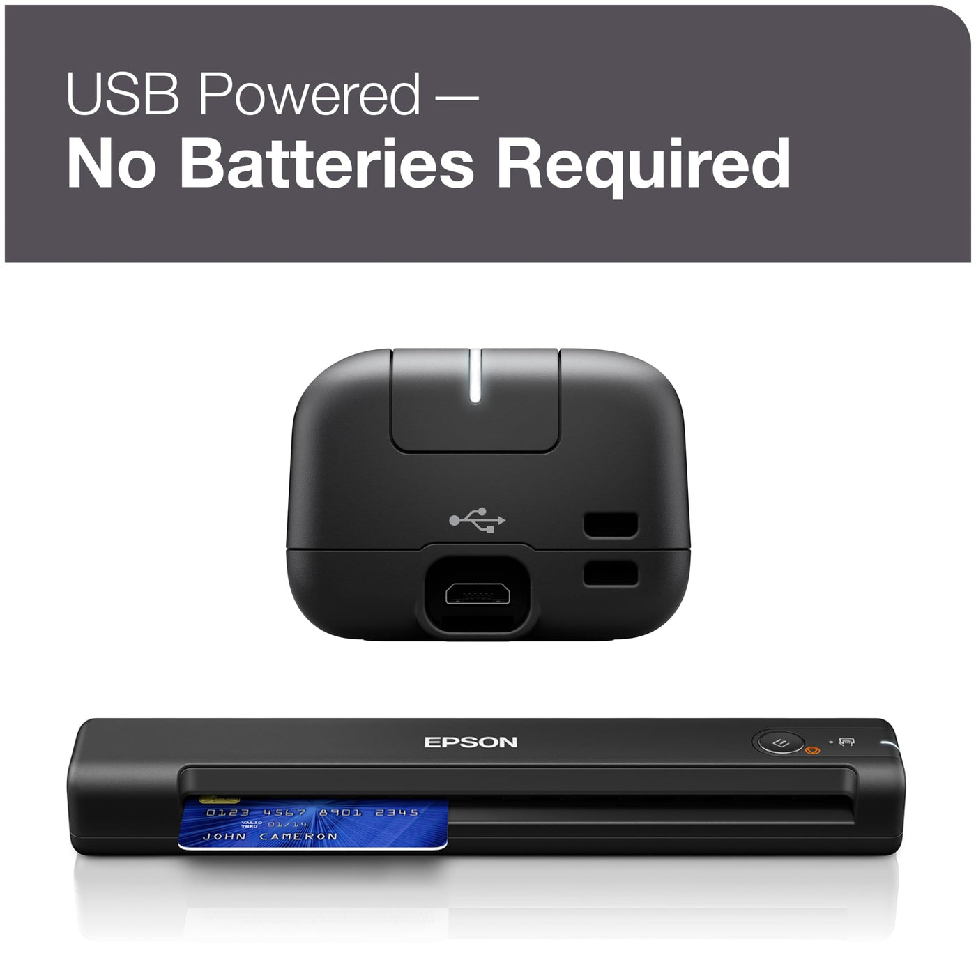 Q: Does the Epson WorkForce ES-50 require an external power supply?A: No, the Epson WorkForce ES-50 is USB powered, meaning you can connect it directly to your computer without needing batteries or an external power supply, making it great for on-the-go scanning.