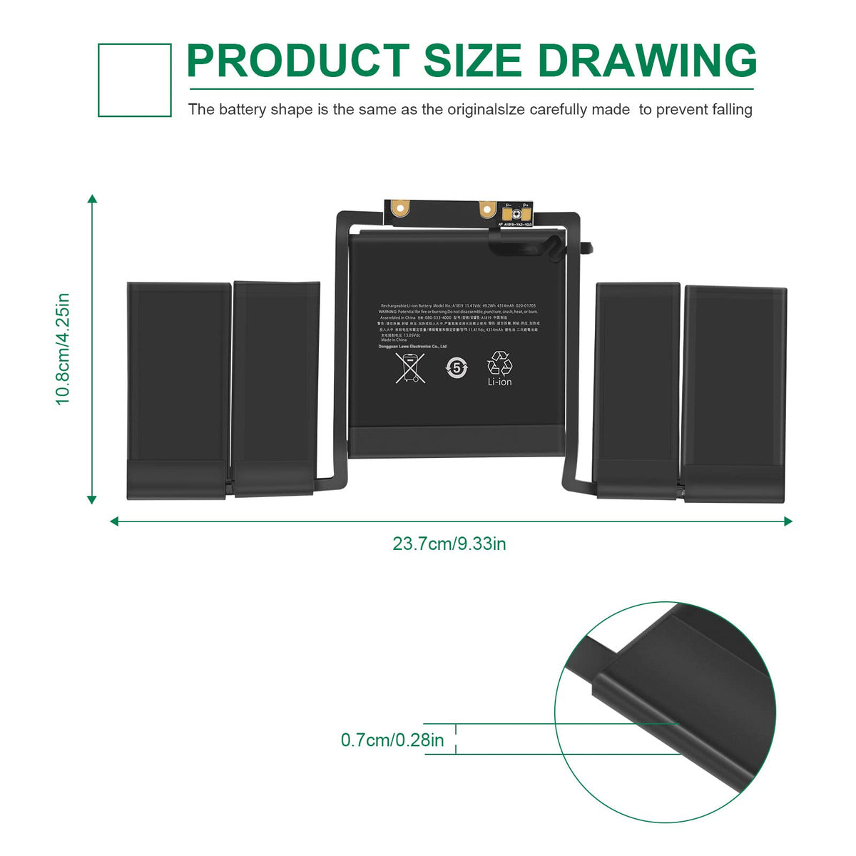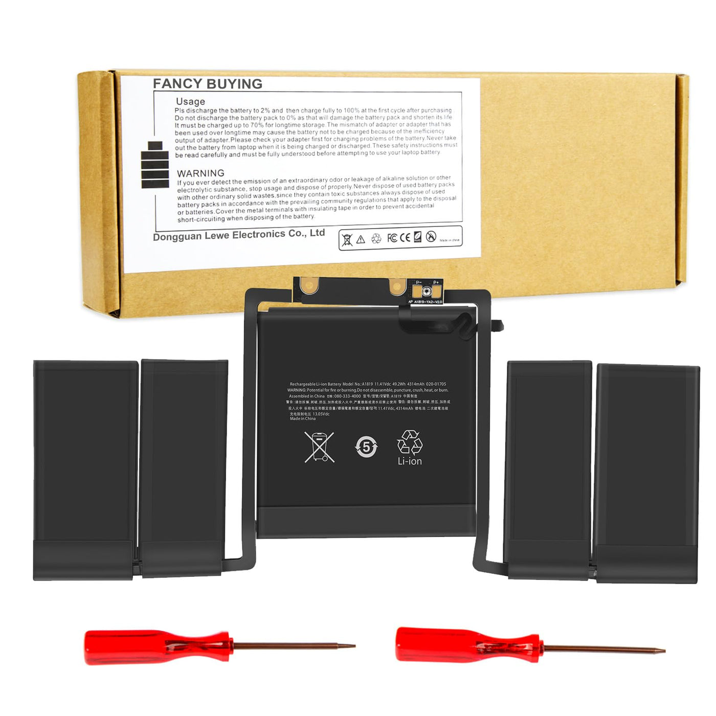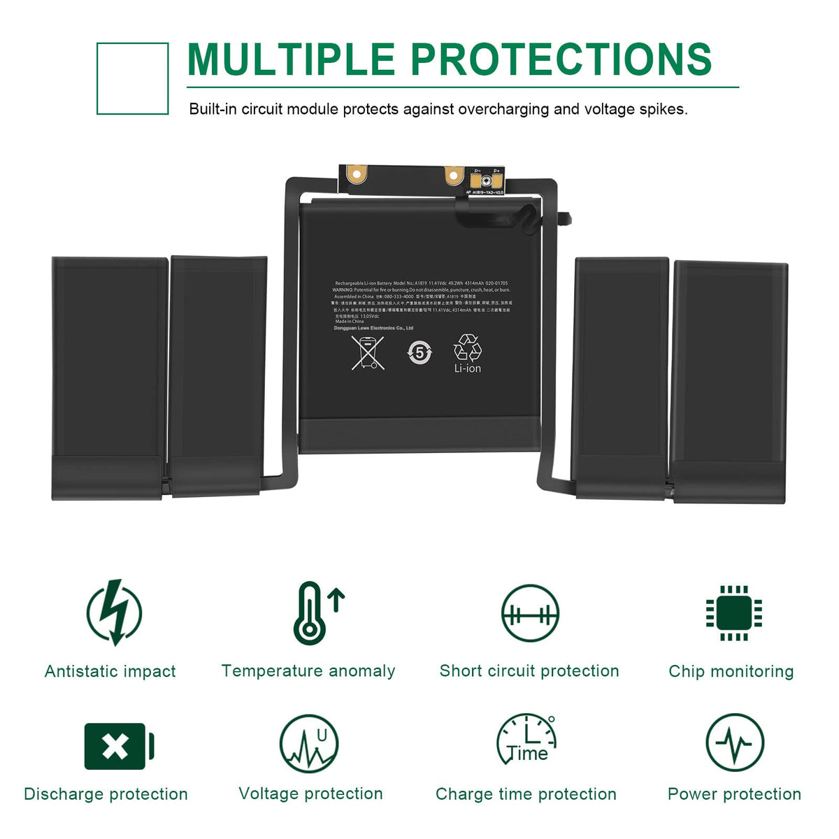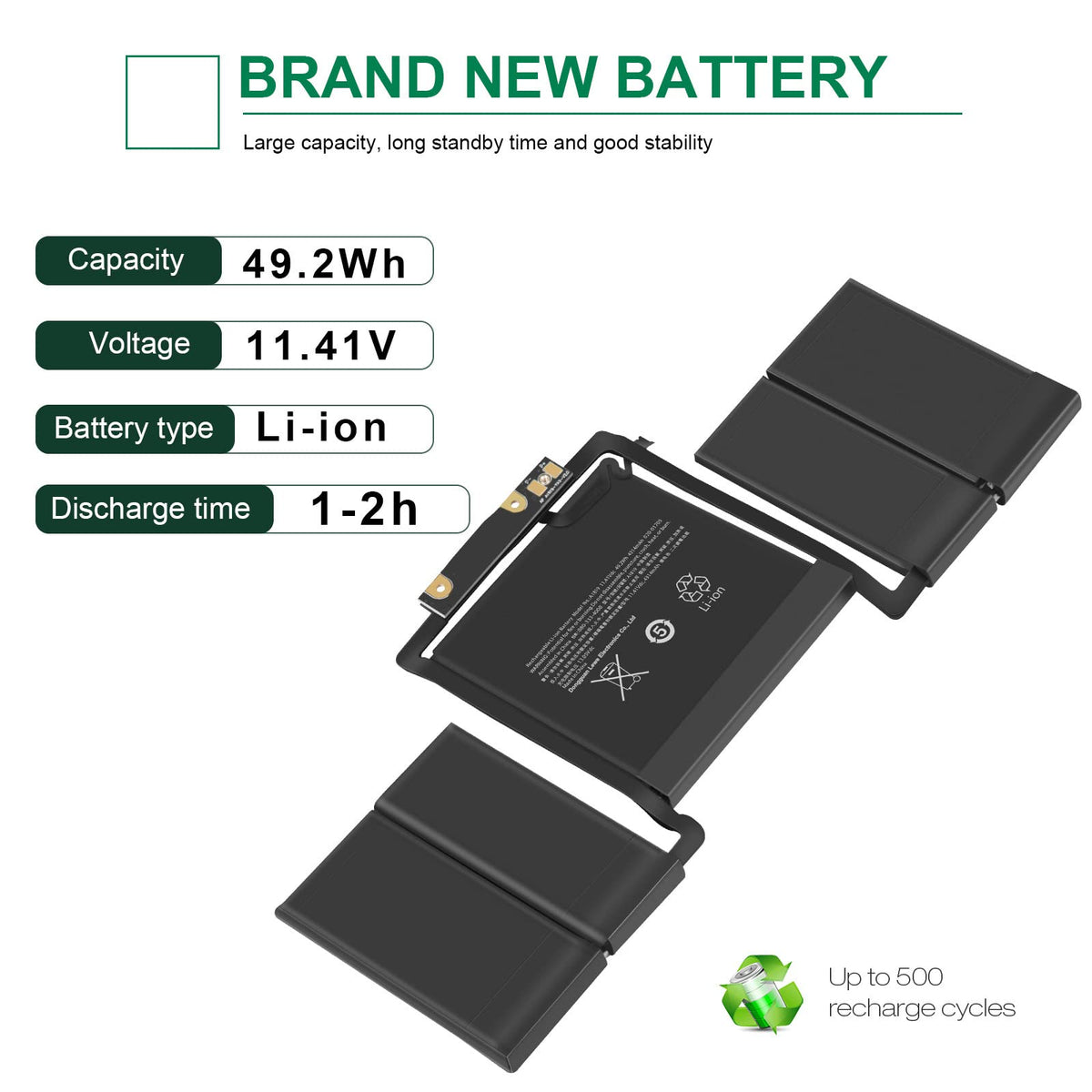 Specification: Battery Type:Li-Ion Voltage:11.4V Capacity:49.2Wh Cells:6Cell Recharge Cycles: 500 Operation Time: Around 2-3Hours Compatible Laptop Models: Macbook Pro 13'' Inch A1706 (Late 2016 Mid 2017) With Touch Bar Version Macbook Pro 13'' Inch A1706 (Emc 3071) (Late 2016) Series Macbook Pro 13'' Inch A1706 (Emc 3163) (Mid 2017) Series Macbook Pro Core I5 2.9 13'' Inch With Touch Bar A1706 (Late 2016) Series Macbook Pro Core I5 3.1 13'' Inch With Touch Bar A1706 (Late 2016) Series Macbook Pro Core I5 3.1 13'' Inch With Touch Bar A1706 (Mid 2017) Series Macbook Pro Core I5 3.3 13'' Inch With Touch Bar A1706 (Mid 2017) Series Macbook Pro Core I7 3.3 13'' Inch With Touch Bar A1706 (Late 2016) Series Macbook Pro Core I7 3.5 13'' Inch With Touch Bar A1706 (Mid 2017) Series Macbook Pro 13'' Inch Mlh12Ll/A Mpxv2Ll/A Mlvp2Ll/A Mnqf2Ll/A Mnqg2Ll/A Mpxw2Ll/A Mpxx2Ll/A Series Compatible Part Number: A1819 A1706 A1706 (Emc 3071) A1706 (Emc 3163) 020-01705