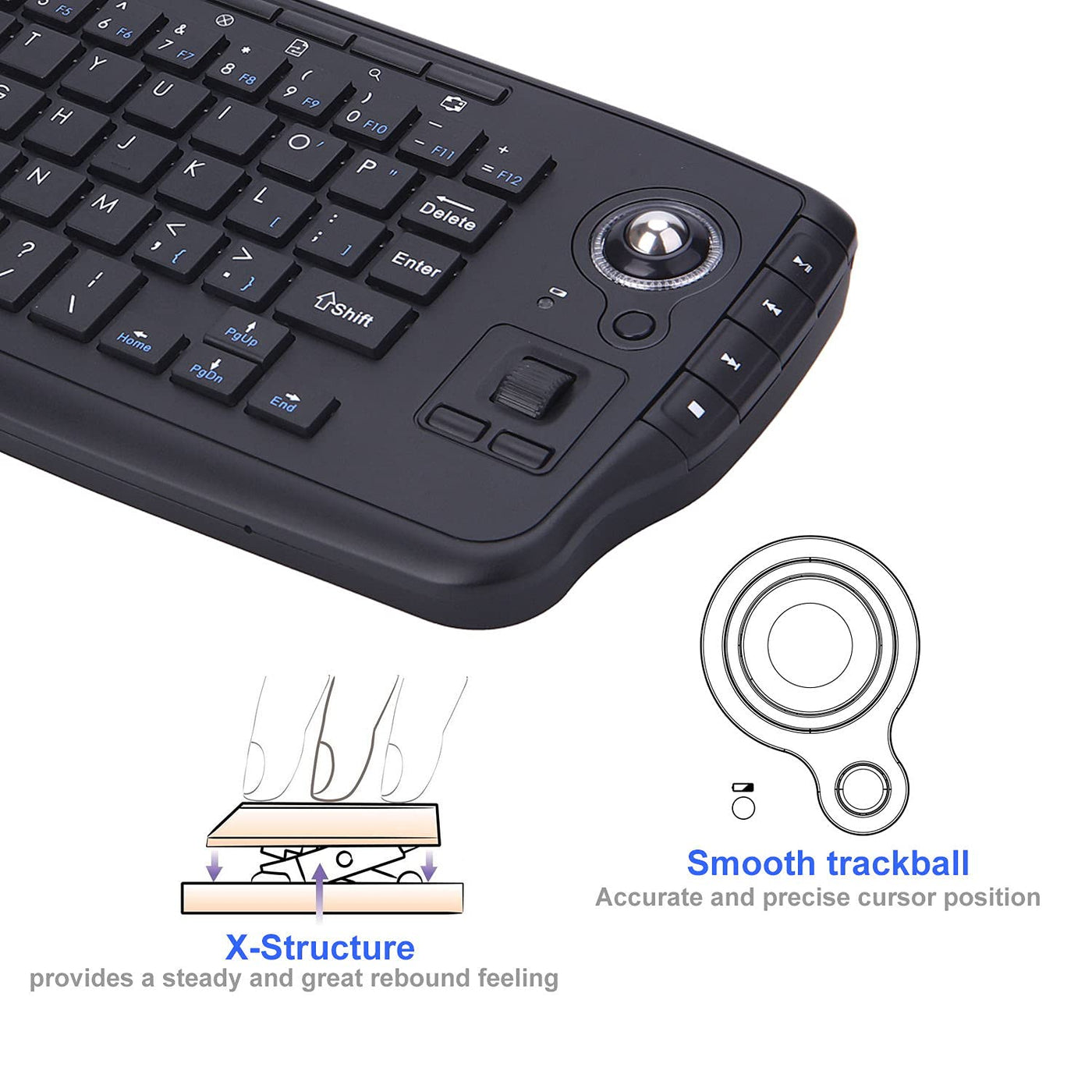 Fonicer Multimedia 2.4Ghz Wireless Mini Keyboard With Trackball Mouse Scroll Wheel For Pcmacandroid Tv Box, Remote Controller,X