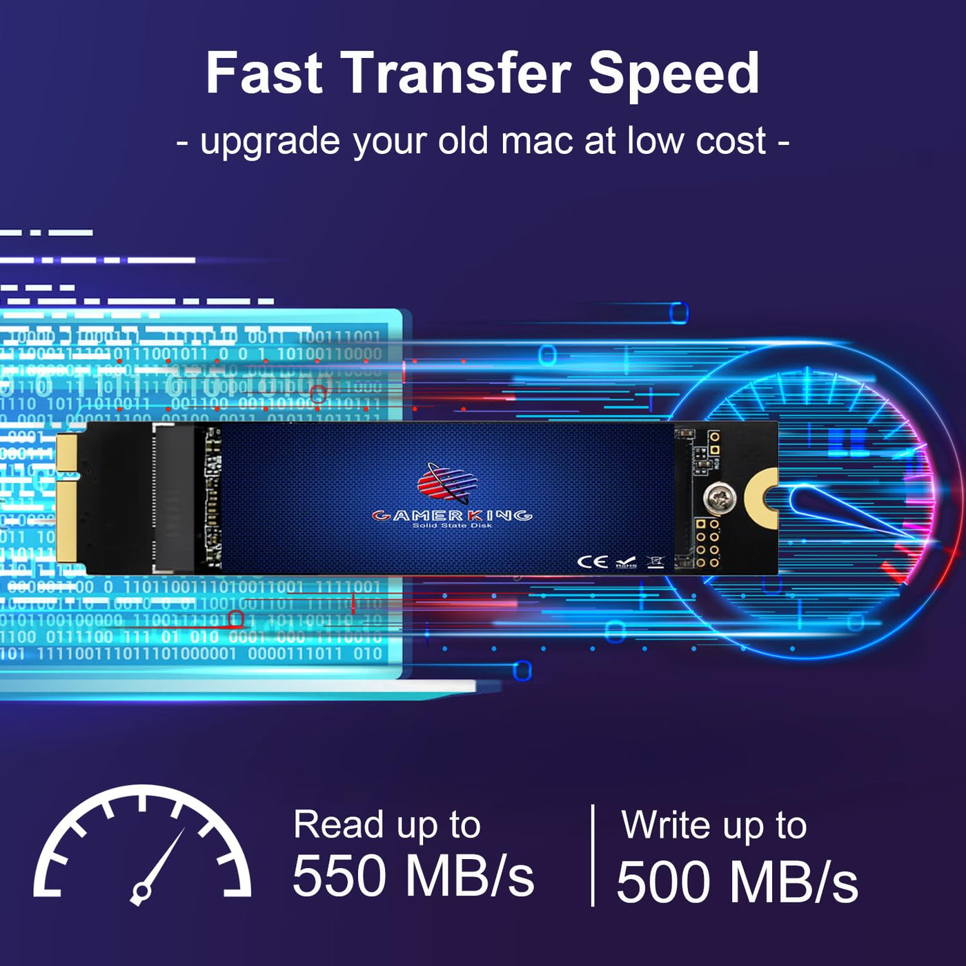 Q: What is the read/write speed of the GAMERKING SSD?A: The GAMERKING SSD offers impressive sequential read speeds of up to 550 MB/s and write speeds of up to 500 MB/s, significantly enhancing your system's performance and efficiency.