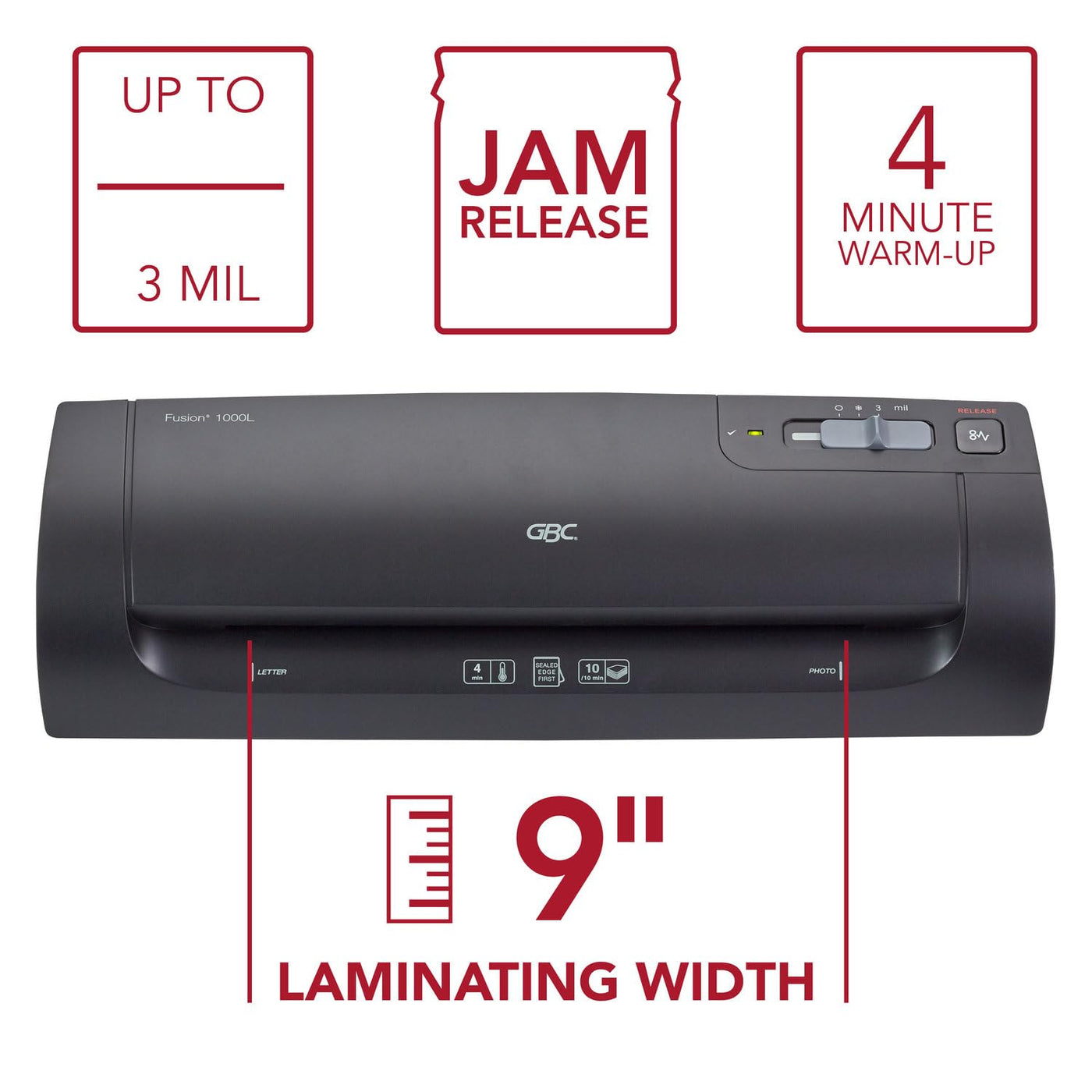 With Best In Class Quality, Our Laminators Will Keep Up With All Of Your Projects. The Gbc Fusion 1000L Laminator Is Perfect For Homes, Schools And Small Offices With Occasional Or Creative Laminating Needs. Laminator Warms Up In Just 4 Minutes For Quick And Easy Use. Laminate Up To 10 Documents In 10 Minutes, With 13'' Per Minute Laminating Speed. The 9'' Laminating Width Allows For A Larger Variety Of Projects, While Smooth Rollers Help Projects Stay Wrinkle-Free. Compatible With Any 3 Mil Pouches. Comes With A 3 Year Warranty And 10 Letter Size Ezuse Pouches, Which Are Designed For Easy Loading And Document Alignment. Lamination Made Simple. Jammed Pouches Are Easily Released At The Touch Of A Button. Machine Has Green Ready Light When Fully Warmed Up. A Cold Lamination Setting Provides More Laminating Options. Cold Lamination Works With Pressure-Sensitive Adhesive Pouches Including Gbc Selfseal Pouches, Sold Separately.