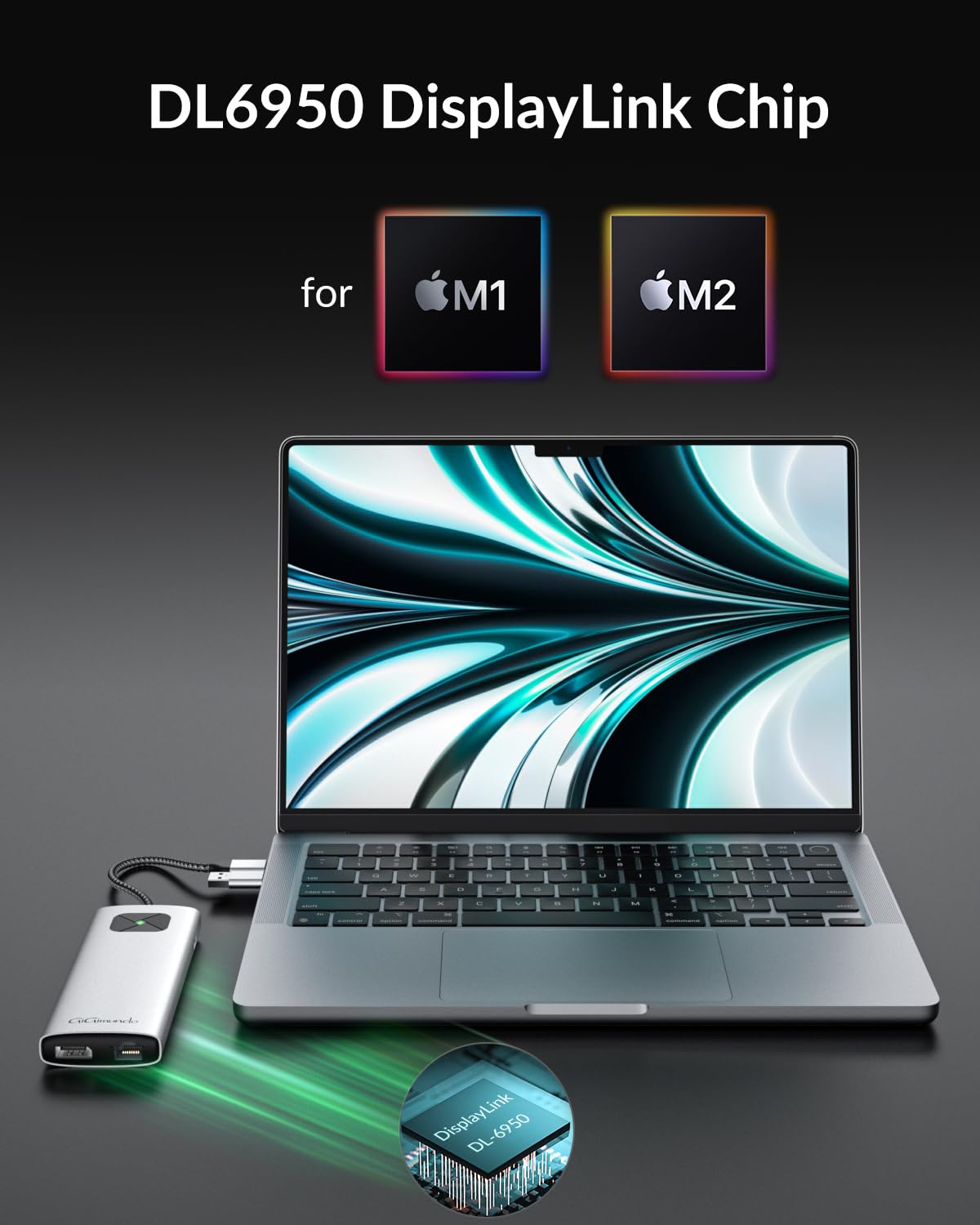 Gigimundo Lk10 Usb3.0 Displaylink Docking Station Dual 4K 60Hz For M1 M2 M3 Macbook/Pc/Laptop, Portable Displaylink Adapter With