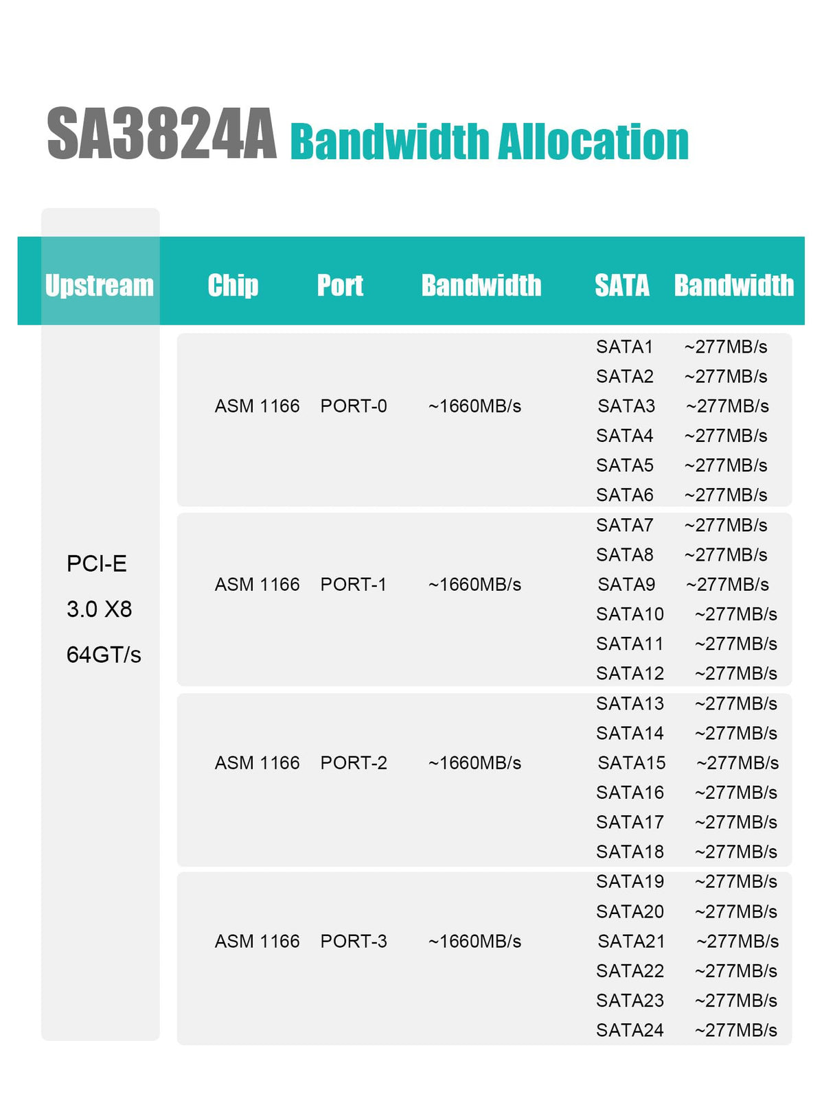 Glotrends Sa3824A 24-Port Pcie 3.0 X8 Sata Expansion Card, Compatible With Windows,Linux,Mac Os,Nas
