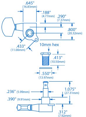 Featuring Precision 16:1 Ratio, Sealed Lubrication, Cast Housings And Removable Metal Knobs, These Are Some Of The Finest Tuners Available.The Large Metal Schaller-Style Knob Is The Same As Found On Many Modern Guitars. 10Mm (13/32'')-Diameter Pegholes Required. Sets Include Mounting Screws And Threaded Hex Bushings.Installation Tipsmounting Screws: Pilot Holes Required. Installing Delicate Screws Into Hard Wood Requires Great Care And Accuracy. We Highly Recommend A No.50 Bit For The Pilot Hole Before Installing These Screws. Lubricate The Screw Threads With Cutting Lubricant (Also Wax Or A Bar Of Soap) To Reduce Friction And Help Them Thread Properly.