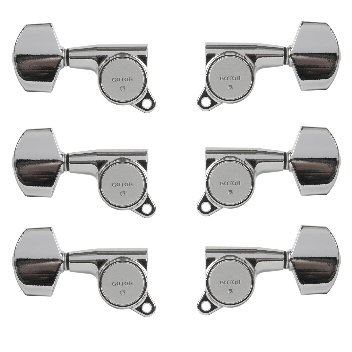 Gotoh Large Schaller Style Knob Tuning Machines, 3 Left & 3 Right, Chrome