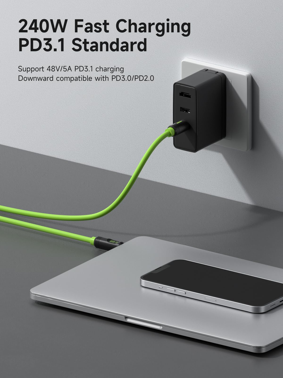 Hagibis Usb 4 Cable, Led Display Usb C 240W Fast Charging Cable With 8K@60Hz 40Gbps Data Transfer Thunderbolt 4/3 Video Cord For Iphone 16 15 Pro Max, Ipad, Macbook Pro Air (Braided, Green, 3.3Ft)