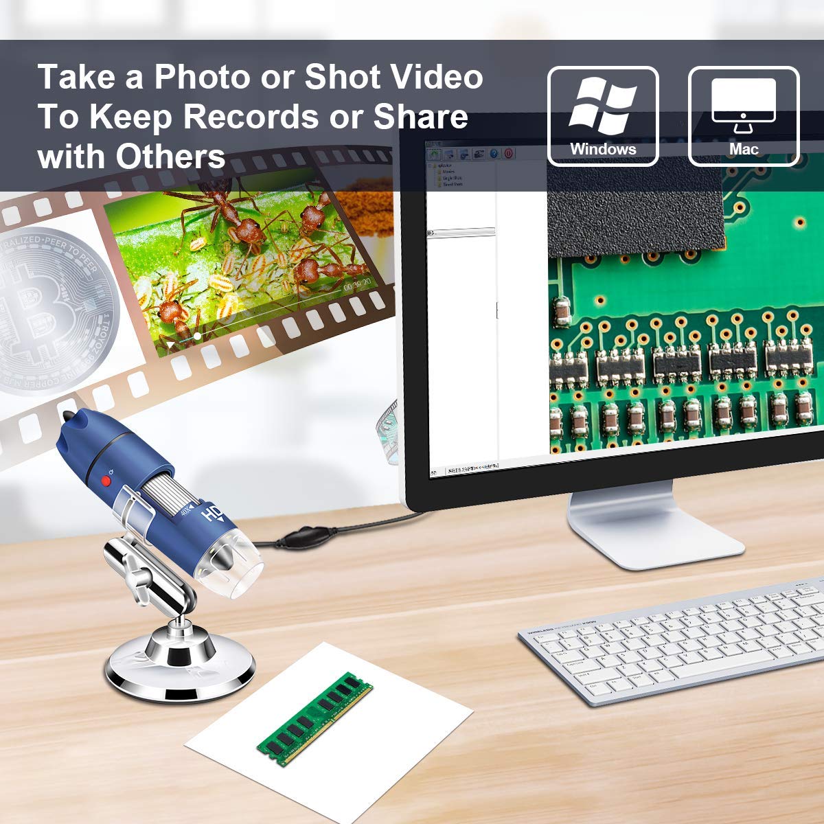 Cainda Usb Digital Microscope Compatible With Windows Xp/Vista/7/8/10/11, Mac, Linux Compatible For Android Phone And Pad With Otg Function (Not Work With Iphone/Kindles) Windows User Win10 User Can Open The Default Camera App To Use This Microscope Directly. Xploview Is A Professional Window Software Designed For Windows Xp/Vista/7/8/10/11. Mac User Mac Users Can Use The Photo Booth To Use Our Microscope Directly. Digital Viewer Can Work Well On Mac Pc. Mac User Can Also Download And Install It To Use. Android User Please Download The Usb Camera Or Otg View From Google Play To Use This Microscope. Chrome Os This Microscope Can Be Used With The Default Camera App That Comes With Chrome. Linux Raspberry Pi: Working With The Current Version Of Raspbian Jessie. Note: The Focus Wheel And Light Control Button Can Be Used On All Devices Above. But The Snap Button Can Only Be Recognized On The Windows System As The Software Was Written By Our Company. All Software Has Buttons For Taking Photos And Videos. Parameters: Focus Range: From 1Mm To 90Mm Frame Rate: Max 30F/S Under 600 Lux Brightness Magnification Ratio: 40X To 1000X Video Format: Avi Photo Format: Jpeg Or Bmp Light Source: 8 Leds Pc Interface: Usb2.0 Power Source: 5V Dc From The Usb Port Operation System: Windows 7 8 10 11/Vista/Xp/2000, Mac Os X 10.5 Or Above, Some Of Android Mobiles, Linux, Chrome(Not Supported For Iphone) Package Including: 1X Usb/Microusb 2In1 Microscope 1X Type-C Adapter 1X Carrying Case 1X Metal Stand 1X Ruler 1X Manual