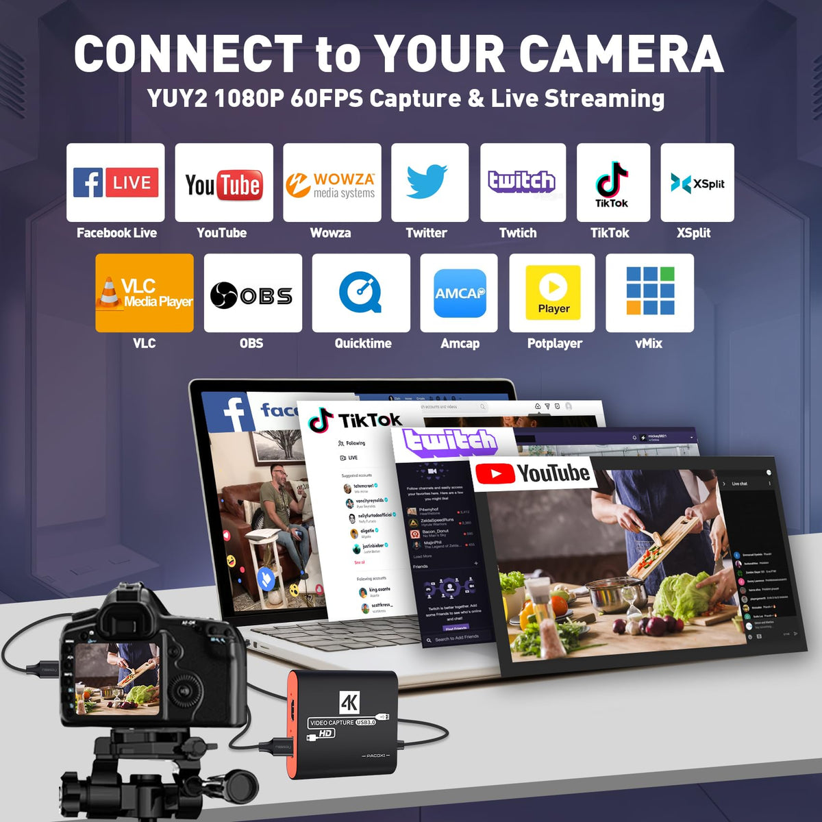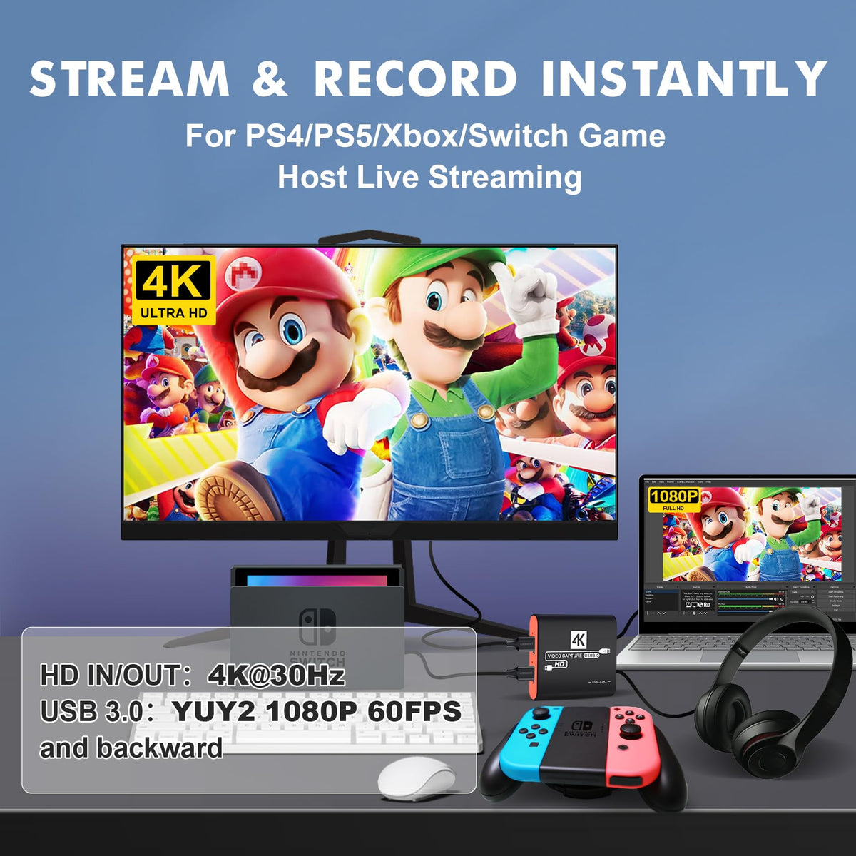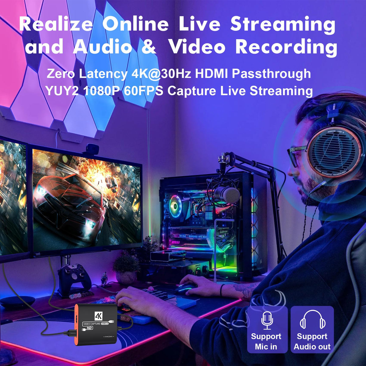 Hdmi Usb3.0 Capture Card With 4K Pass Through,1080P 60Fps Audio Video Usb C Capture Card For Windows/Mac Twitch/Youtube/Tiktok G