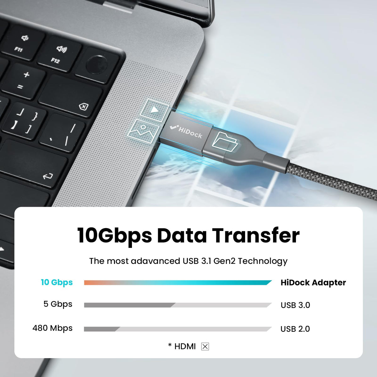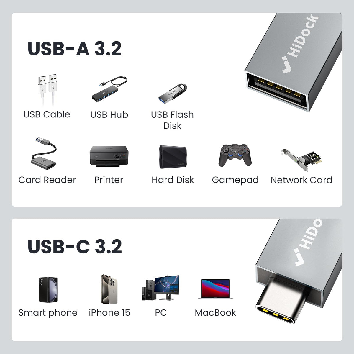 Hidock Usb C To Usb Adapter 10Gbps, 2 Pack Usb C 3.2 Male To Usb A Female Adapter Compatible With Macbook Pro/Air/Ipad Pro, Note