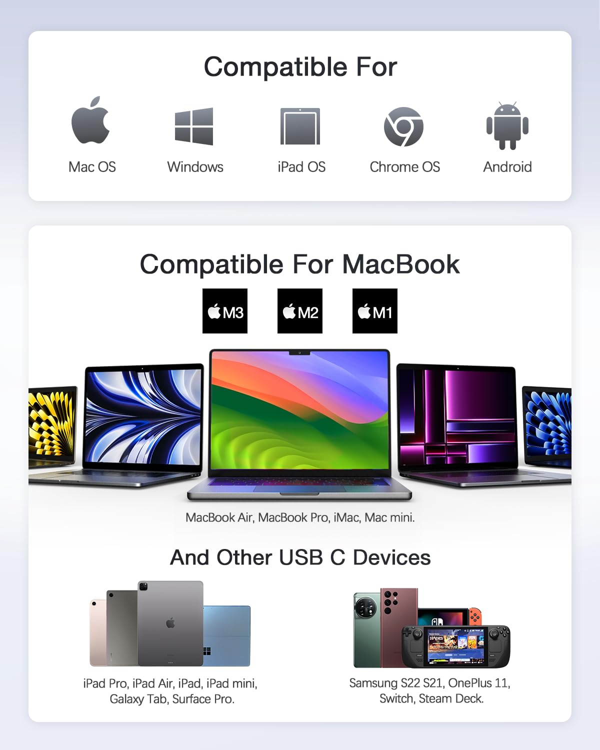 Ul/Sgs Approved Hiearcool Usb C Hub: The Intelligent Usb C Adapter Has Perfectly Combined All The Functions You Need. Usb C To Hdmi Hub Equipped With Usb3.0 X2, 4K@30 Hdmi, Sd/Tf Card Adapter, And Up To 100W/20V/5A Type C Power Delivery Charging Port. | 4K Hdmi To Usb C Hub: The Usb C Hub Provides You With Lifelike 4K 3840 X 2160@30Hz Hdmi Images That Bring An Immersive 3D Resolution Experience. | 100W Power Delivery Supported: The Usb C Hub Supports A 100W Usb C Pass-Through Charging, Ideal For Macbook Pro/Air Or And Other Usb C Devices, Your Primary Choice Of Usb C Hub. | Efficient Usb C Hub: Two High-Speed Usb-A 3.0 Ports Capable Of 5Gb/S Transfer Speed For Quick Data Transfer & Charging Up To 5V@0.9A. Plug And Play, No Software, Drivers Required. | Travel Size Sd/Tf Usb C Adapter: Aluminium Alloy Casting And 2.4Ounce Pocket Size,5Gbps Read And Write, Capacity Up To 2Tb Cards. | Enjoy Peace Of Mind With Hiearcool'S Products,Two-Year Product Care And 24/7 Customer Support, Ensuring Assistance Is Always Available When You Need It.