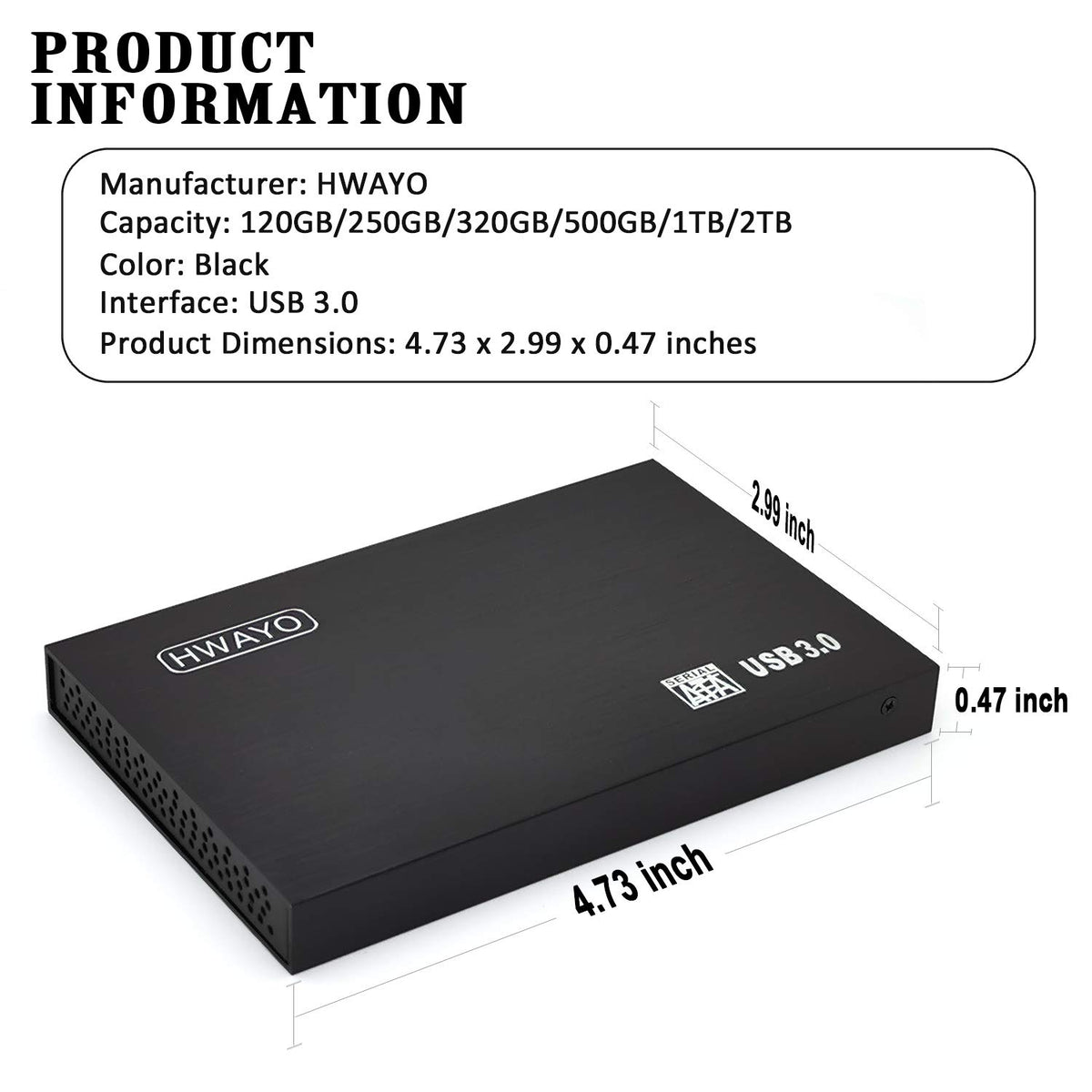 Hwayo 160Gb Ultra Slim Portable External Hard Drive Usb3.0 2.5'' Hdd Storage For Pc, Desktop, Laptop, Macbook, Chromebook (Black)