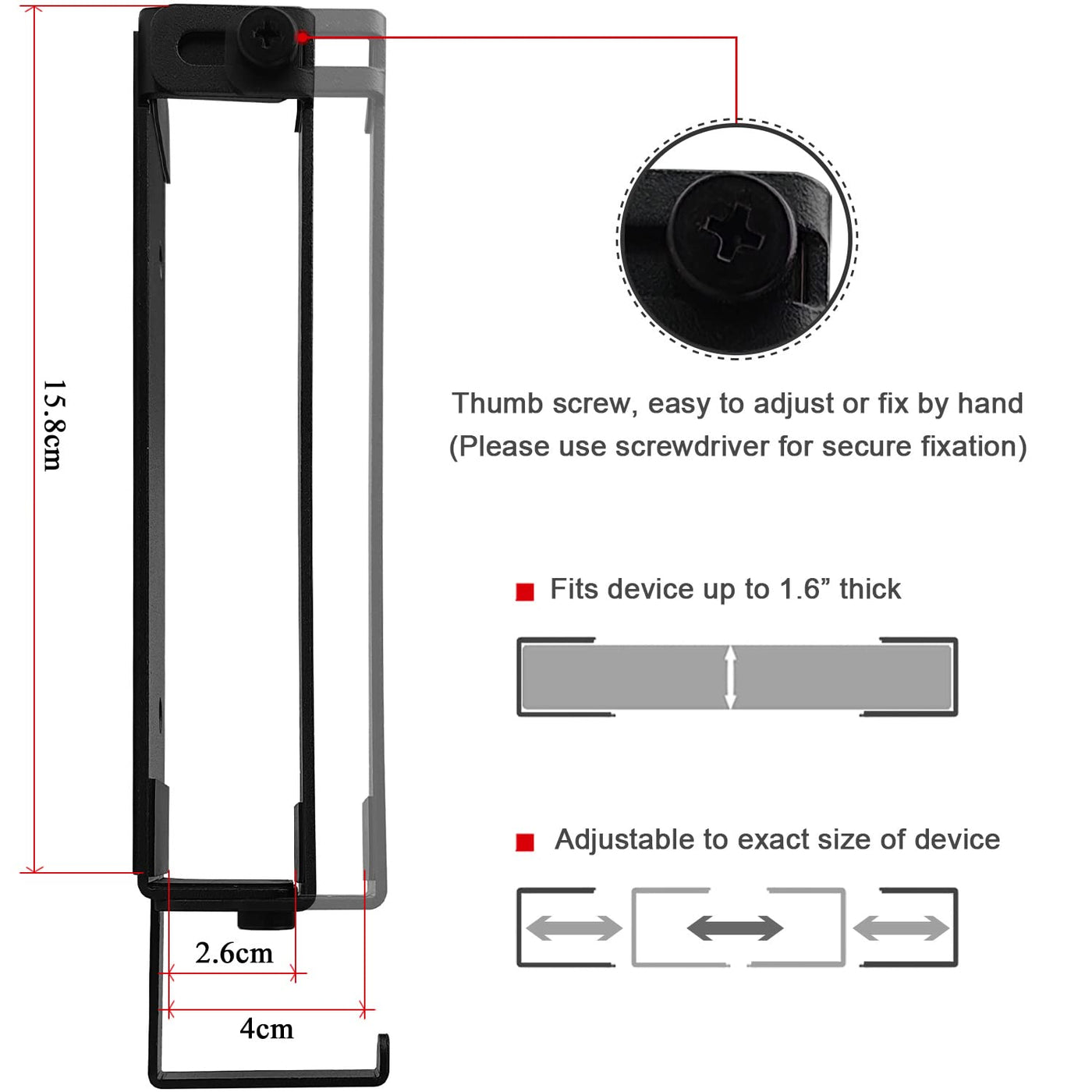 Q: How do I install the laptop wall mount using adhesive?A: To install the laptop wall mount using the adhesive option, apply the 3M VHB tape provided, ensuring the surface is clean and dry. After sticking, allow at least 24 hours for the adhesive to set before using the mount. Avoid placing it on painted, damp, or plastered walls to prevent damage.