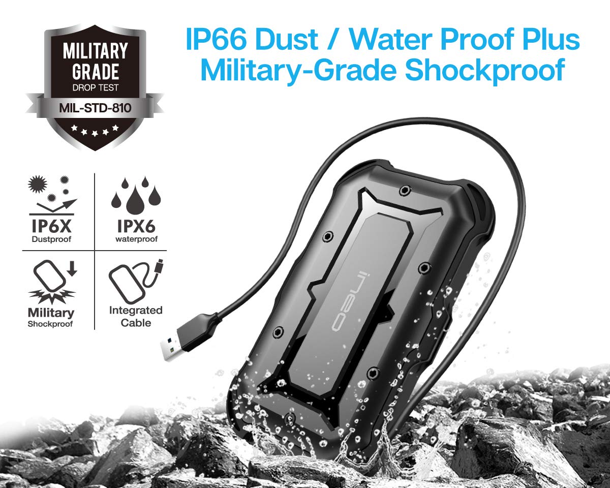A New Exterior Design Of Waterproof And Shockproof Enclosure Just Comes Out! Ineo T2566 For 2.5 Inch Hard Drives And Ssds Is Created For The Perfect Protection From Water And Shock With The Compact Silicon Frame And Abs Cover, Of Course It Is Ip66-Rated And Mil-Std 810-Certified For Getting Rid Of Concerns In Your Mind. And Integrated Cable Will Keep You From Misplacement Of The Cable Itself.