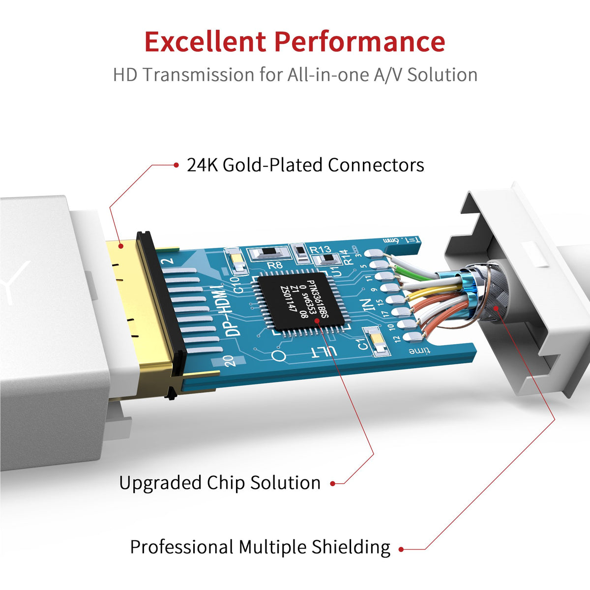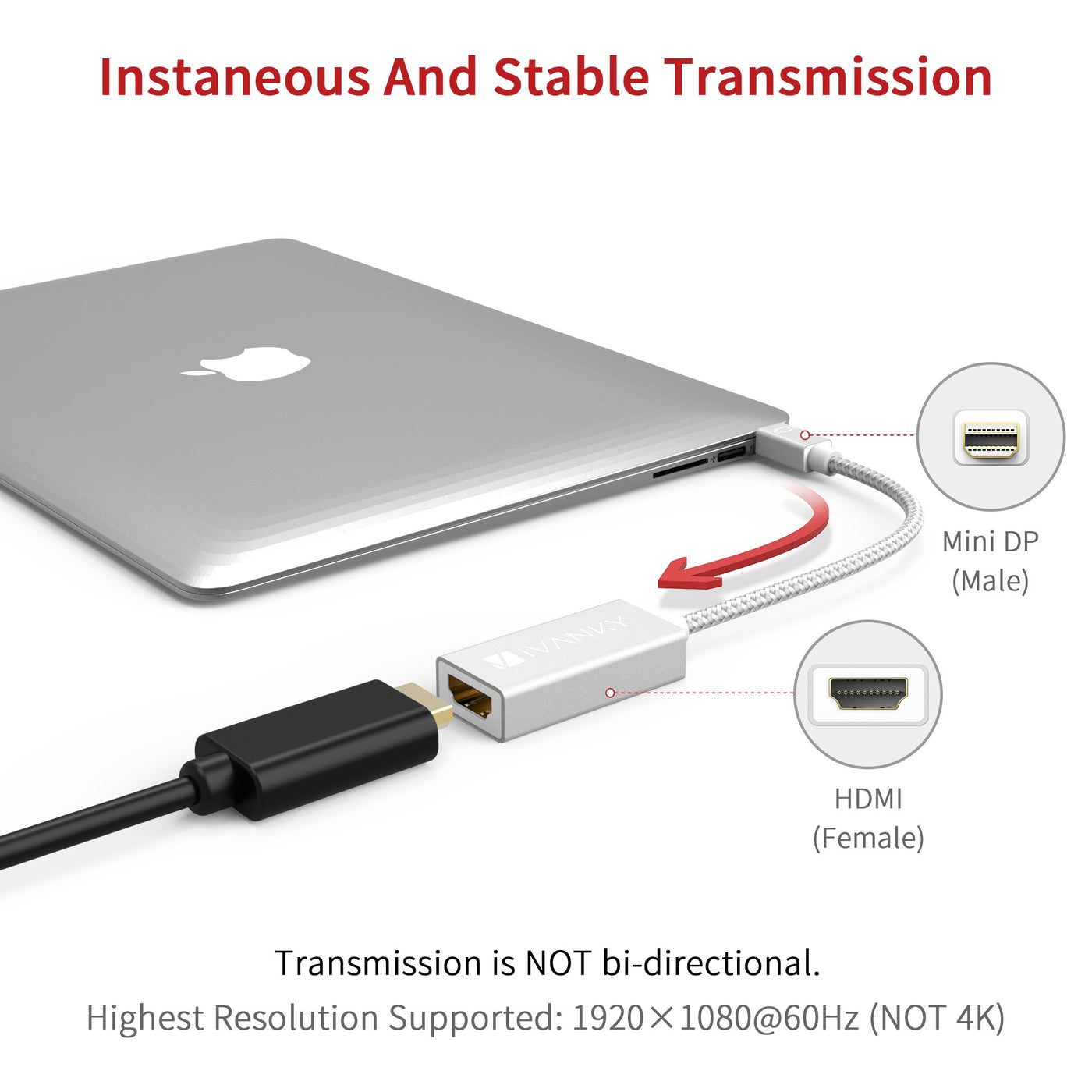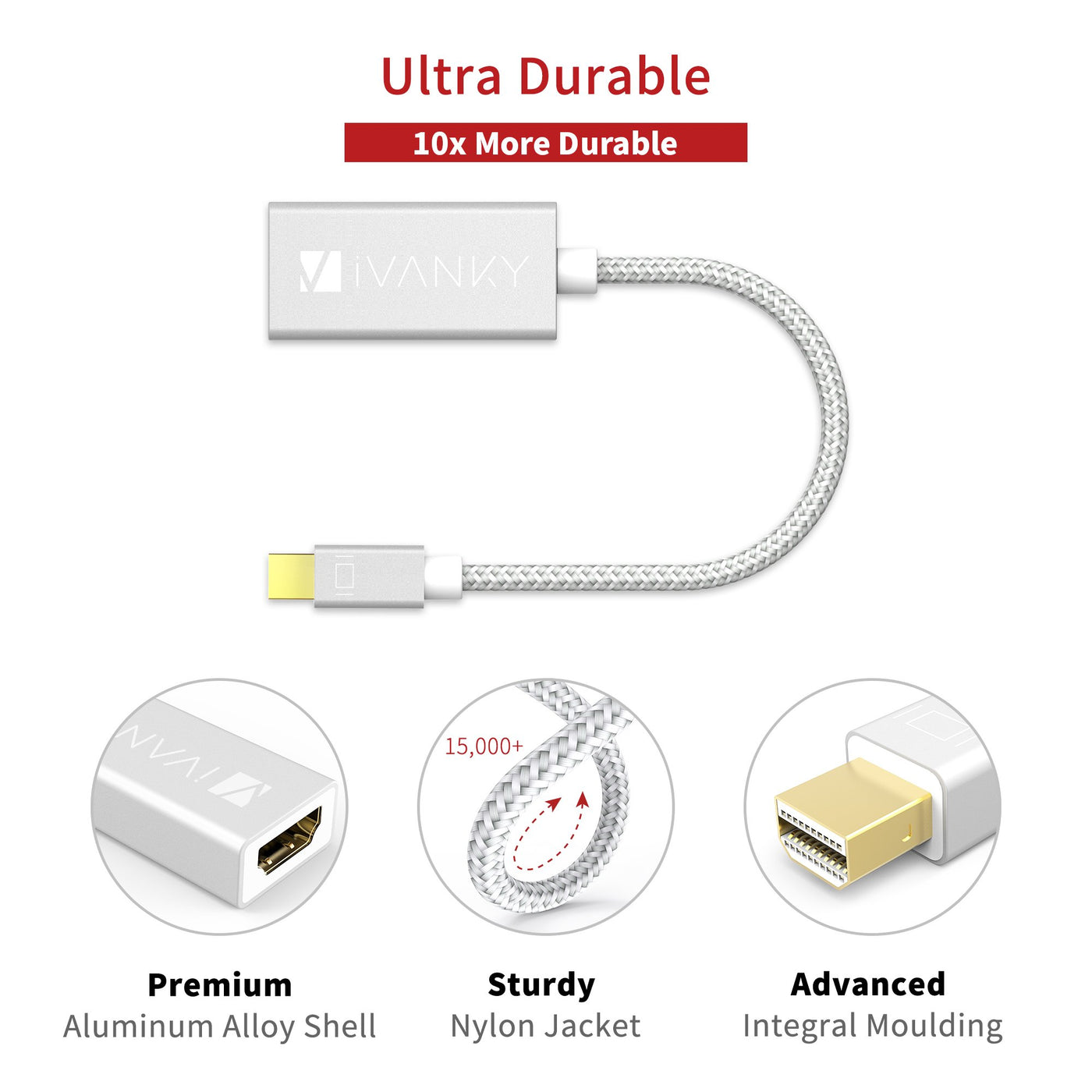 Ivanky Mini Displayport To Hdmi Adapter [Super Slim, Aluminum Shell, Nylon Braided] Mini Dp To Hdmi Adapter For Macbook Air/Pro,