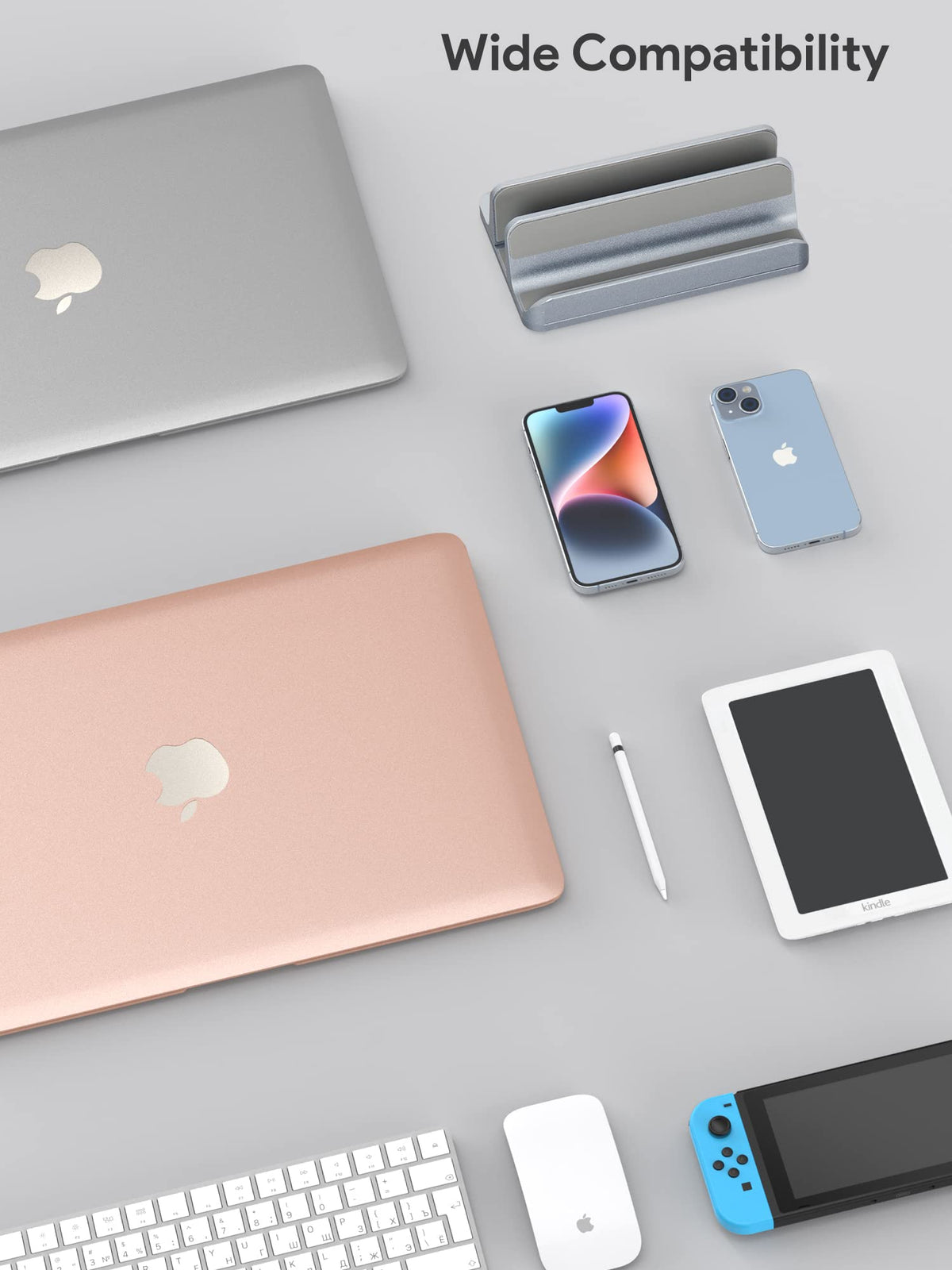 Q: What laptops are compatible with the JARLINK Vertical Laptop Stand?A: The JARLINK Vertical Laptop Stand is compatible with a wide range of devices including MacBook Pro/Air, Microsoft Surface, Dell, Samsung, Lenovo, Acer, Sony, ASUS, HP, Chromebooks, and more, making it a versatile option for various laptop sizes.