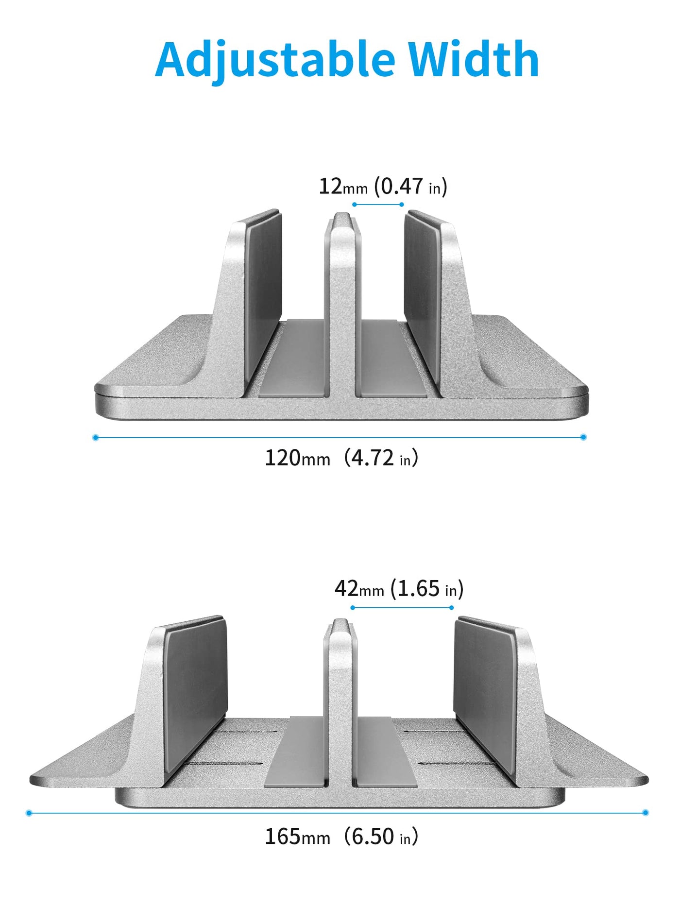 Compatibilitycompatible With Macbook, Macbook Pro/Air, Apple Notebooks, Ipadscompatible With Microsoft Surface, Dell, Acer, Samsung, Sony, Asus, Hp, Chromebooks, Ecteasy To Adjust The Widthyou Could Adjust The Width 20Mm/0.79In To 42Mm/1.65In By Turning The Screw.Product Specifications?Material: Aluminum?Color: Gray?Weight: 665G Or 23.4Oz?Size: 5.9 X 4.7 X 1.8 Inch?Thickness Of The Slot: 0.79 Inch - 1.65 Inchpackage Included1* Vertical Laptop Stand1* Allen Keyseller Warranty Policy12 Months Guarantee12/24 Online Customer Service