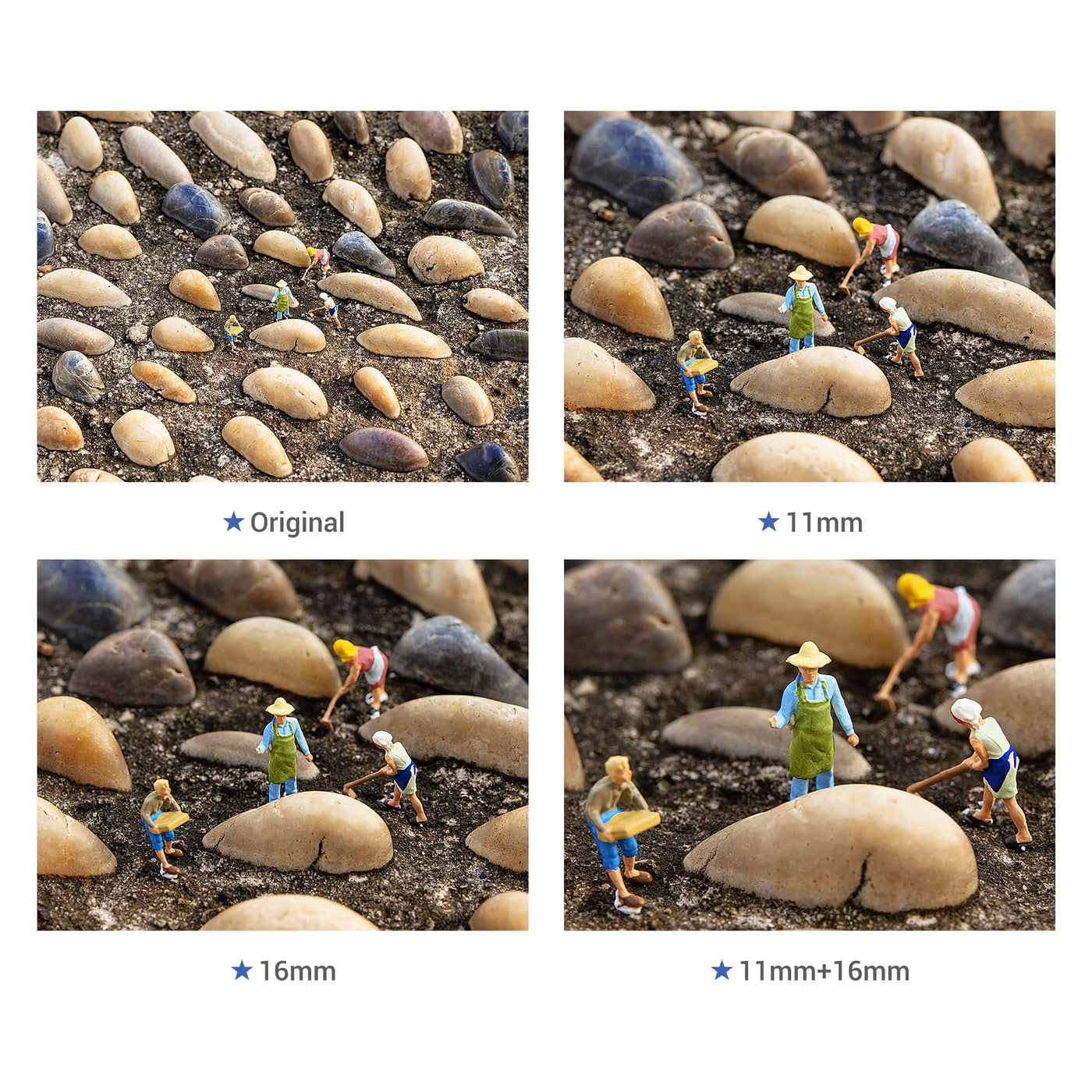 Q: Can I use the extension tubes in combination for greater magnification?A: Yes, the JJC extension tubes of 11mm and 16mm lengths can be used individually or combined together to achieve greater magnification for macro photography.