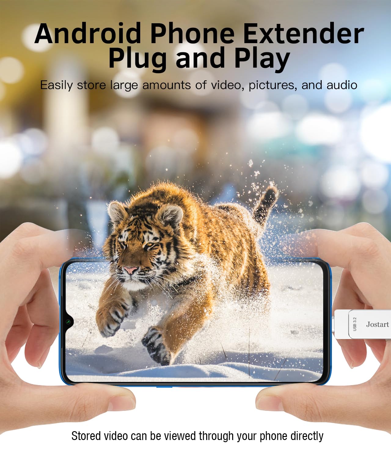 Jostart 2 In 1 Usb 3.2 Solid State Flash Drive: 1. Up To 500Mb/S Of Read Speed And 450Mb/S Of Write Speed, 1G In 2 Seconds. Easily Store Large Amounts Of Video, Audio And Pictures. 2. Plug-Play, Plugs Directly Into Your Android Phone Or Computer, No Cable And Software Required. Efficient Transfer Anytime And Anywhere, Save More Energy And Time. 3. Phones Expansion&Data Backup. Backing Up Your Hard Drive, Easy Data Backup. No Worries About The Limited Memory Space On Your Android Phone And Computer. 4.Usb3.2 & Type-C Dual Interfaces Design. Easy And Efficient Cross-Device Transfer. 5. Wide Compatibility. Compatible With Desktop /Laptop/Android Phones/Car Stereos/Smart Tvs And More. Let'S Enjoy The Fun Of Mobile Storage Better. 6. Mini, Compact And Portable. Easy To Carry Anywhere, Convenient For Your Business Trip And Entertainment. 7. Durable Zinc Alloy Body, Features Waterproof, Dust-Proof, Shockproof, Anti-Pressure, High Temperature Resistant Characters.