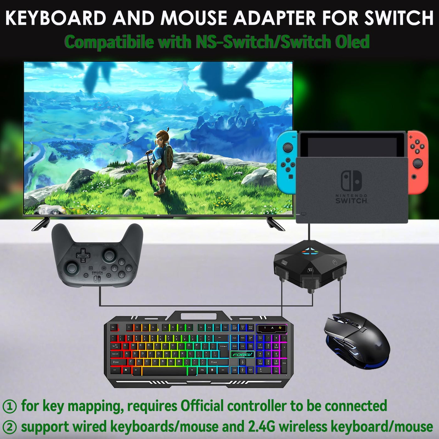 Q: Is this keyboard and mouse adapter compatible with the Nintendo Switch?A: Yes, this adapter is specifically designed for the Nintendo Switch and is compatible with multiple platforms, including Switch Pro and Joy-Con controllers.