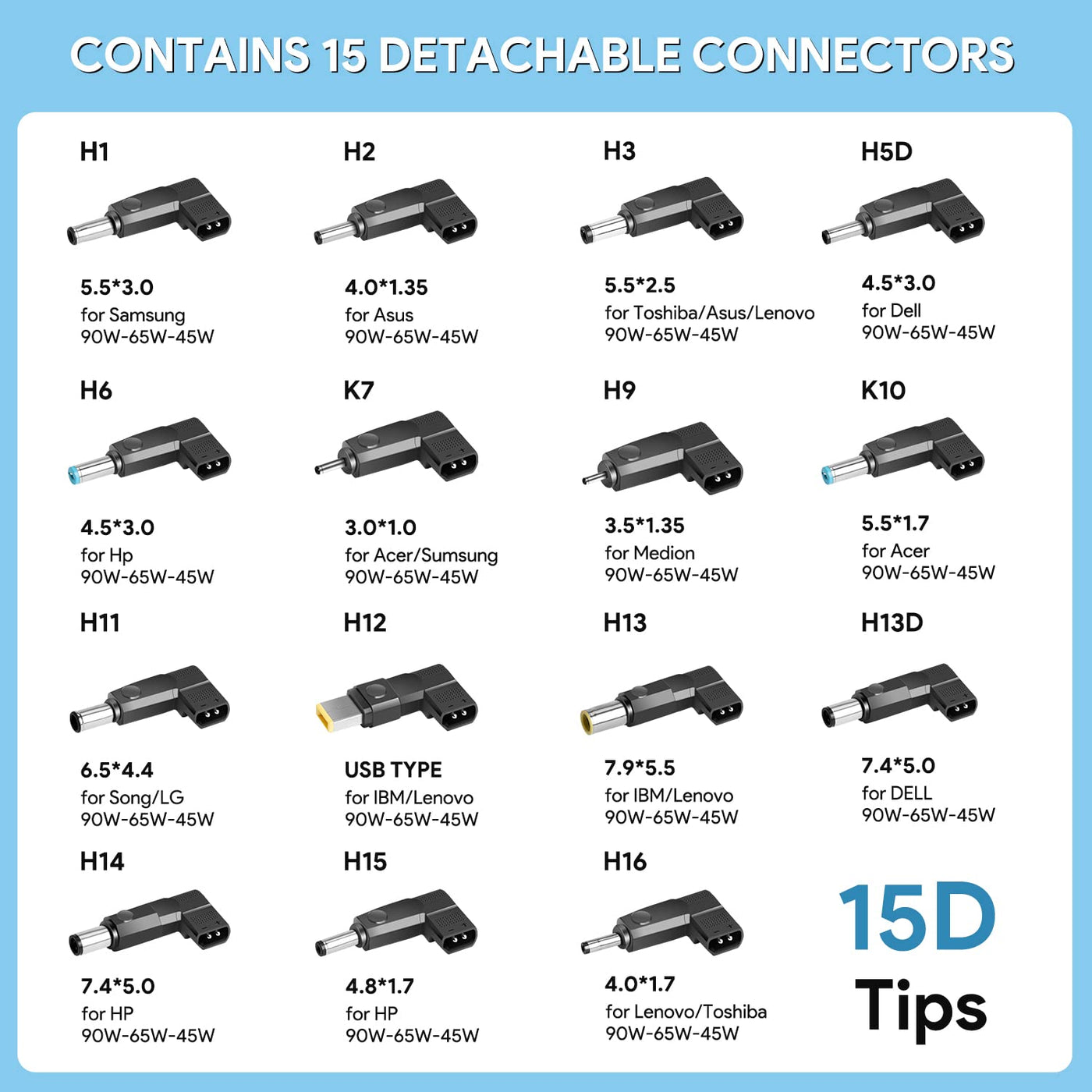 Kfd Universal Laptop Car Charger Pd 100W 90W 87W 67W 65W 61W 45W Usb C Dc Adapter For Macbook Surface Lenovo Dell Hp Gateway Asu