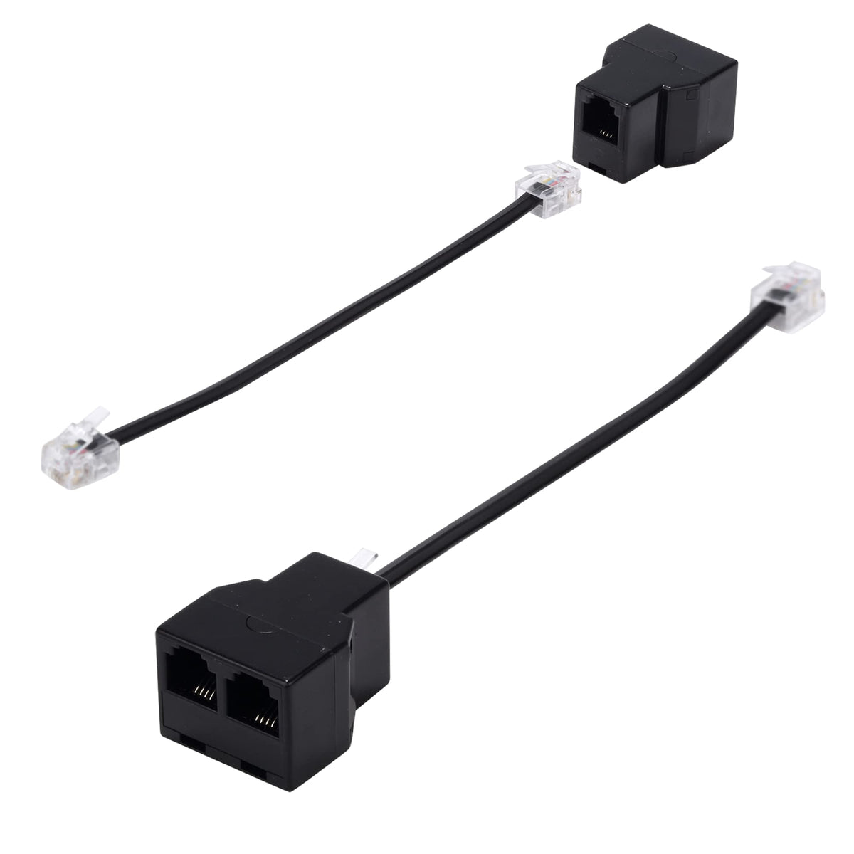 Lansensu Phone Line Splitter,Telephone Splitter,With Rj11 6P4C Plugs,Suitable For Telephone,Fax Machine,Black 2 Pack
