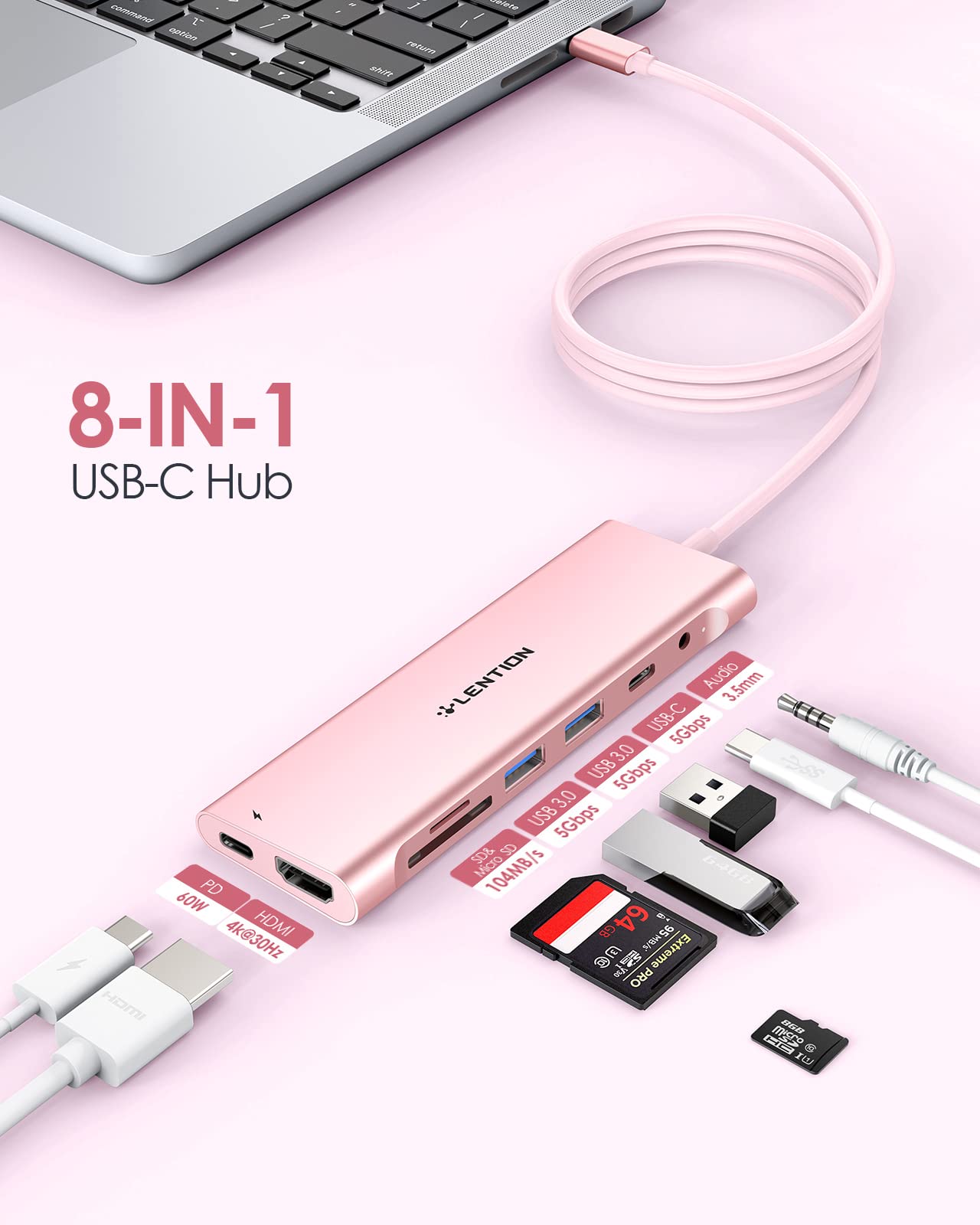 Long Cable Extension: Particularly Features A 3.3 Feet Super Long Cable, Making Lention Cb-C37 Usb C Hub An Ideal Solution To Maximize Your Device'S Capability To Create A More Efficient Workstation And Freely Adjust The Desktop Layout As You Like. It Is A Good Choice For Back To School Supplies, As Well As A Good Helper For Your Work | Both Video & Audio: Mirror Or Extend Your Desktop Onto Any Hdmi-Enabled Tvs, Monitors Or Projectors Via Hdmi. Supporting 3840X2160 4K@30Hz, 2560X1600 And Lower Resolutions At 60Hz. It Is Also Downward Compatible With 2K@75Hz And 1080P@144Hz. The 3.5Mm Audio Port Support Mic In & Out | Dual Usb C Ports: One Is Only For Charging Which Provides Up To 60W Power Pass-Through. Another Is For Data Transfer Which Supports Usb 3.0 Standard With Speed Up To 5Gbps (Not Support Video Signal Transfer). Dual Usb C Ports Can Work Simulaneously | Superspeed Transmission: 2 Usb-A Female Ports Support Usb 3.0 Super Speed Transmission (Up To 5 Gbps). Sd & Micro Sd Card Readers Support Uhs-1 (Up To 104 Mb/S), Both Card Reader Slots Can Read And Write Simultaneously. Broadly Work With Macbook Pro 2016-2023 (13/14/15/16) With Thunderbolt 3/4 Ports & Macbook Air 2018 2019 2020 2021 2022 2023 With Thunderbolt 3/4 Ports, New Macbook Air 2018 2019 2020 2021 2022 (Including M1 Versions), Macbook 12, Surface Go/Book 2/Pro 7, Chromebook, Steam Deck, More. (Not For The Previous Generation Of Macbook Air & Pro; Not For Apple Superdrive) | Stable Driver 3.0 Certified: Lention Published The Advanced Stable Driver 3.0 Standard To Help Customers Buy With Confidence. The Standard Included 3 Main Features: Non-Interference Between Connected Peripherals, Sufficient Power Supply, And The Devices Working Under Normal Temperature Without Overheating