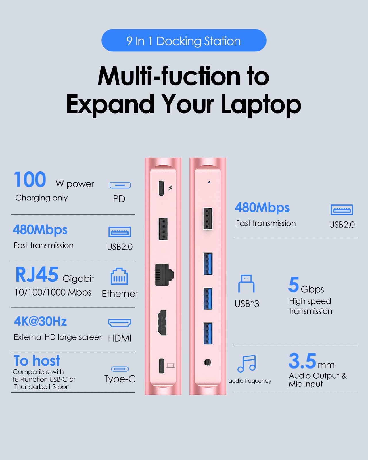 Lention Usb C Docking Station With 100W Pd, 4K Hdmi, Gigabit Ethernet, Usb 3.0/2.0, Aux Adapter For 2023 2016 Macbook Pro/Mac Ai