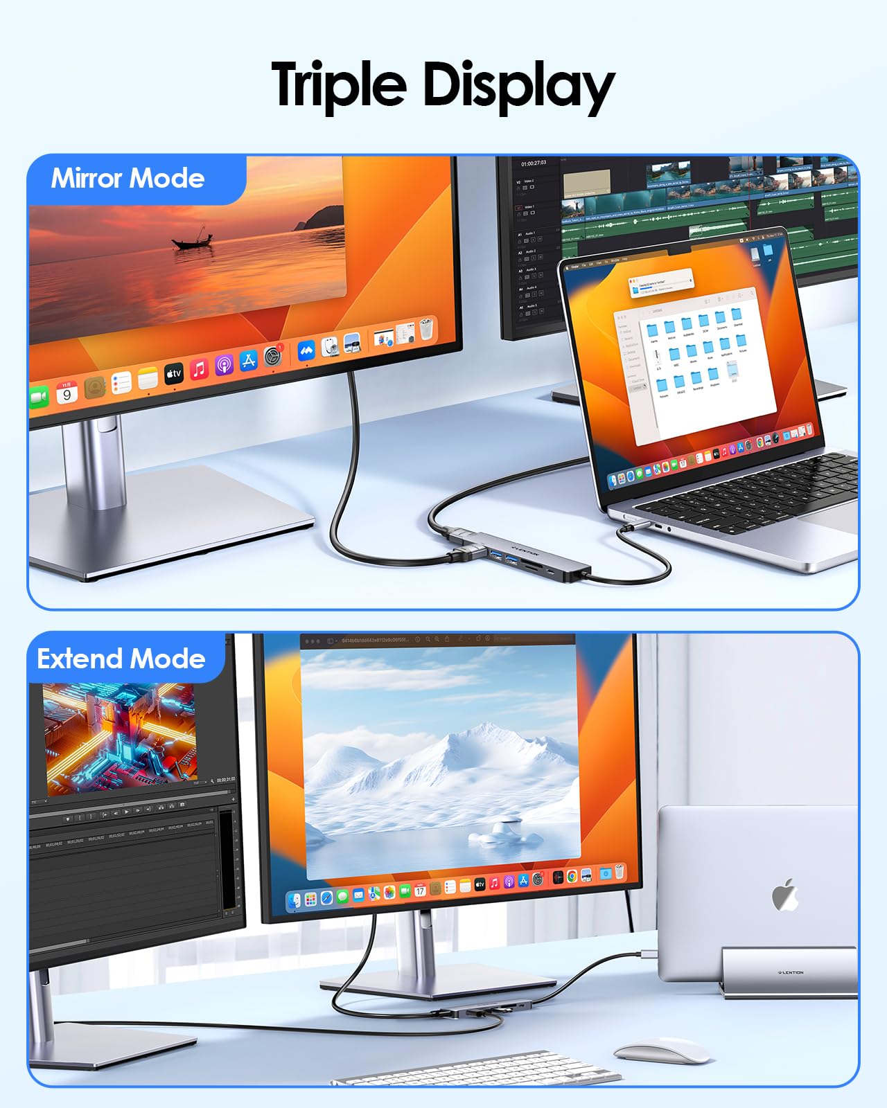 7-In-1 Expansion - Lention Usb C Hub Cb-Ce45 Usb C Docking Features Dual Hdmi For Macbook Mst Mode, 5Gbps Data Transfer With 2 Usb 3.0, Pd 100W, Sd/Micro Sd Card Readers, Dual Monitors, Break Free From The Single-Monitor Limitation Of Macbook, Usb-C To Dual Hdmi Multi-Monitor Adapter