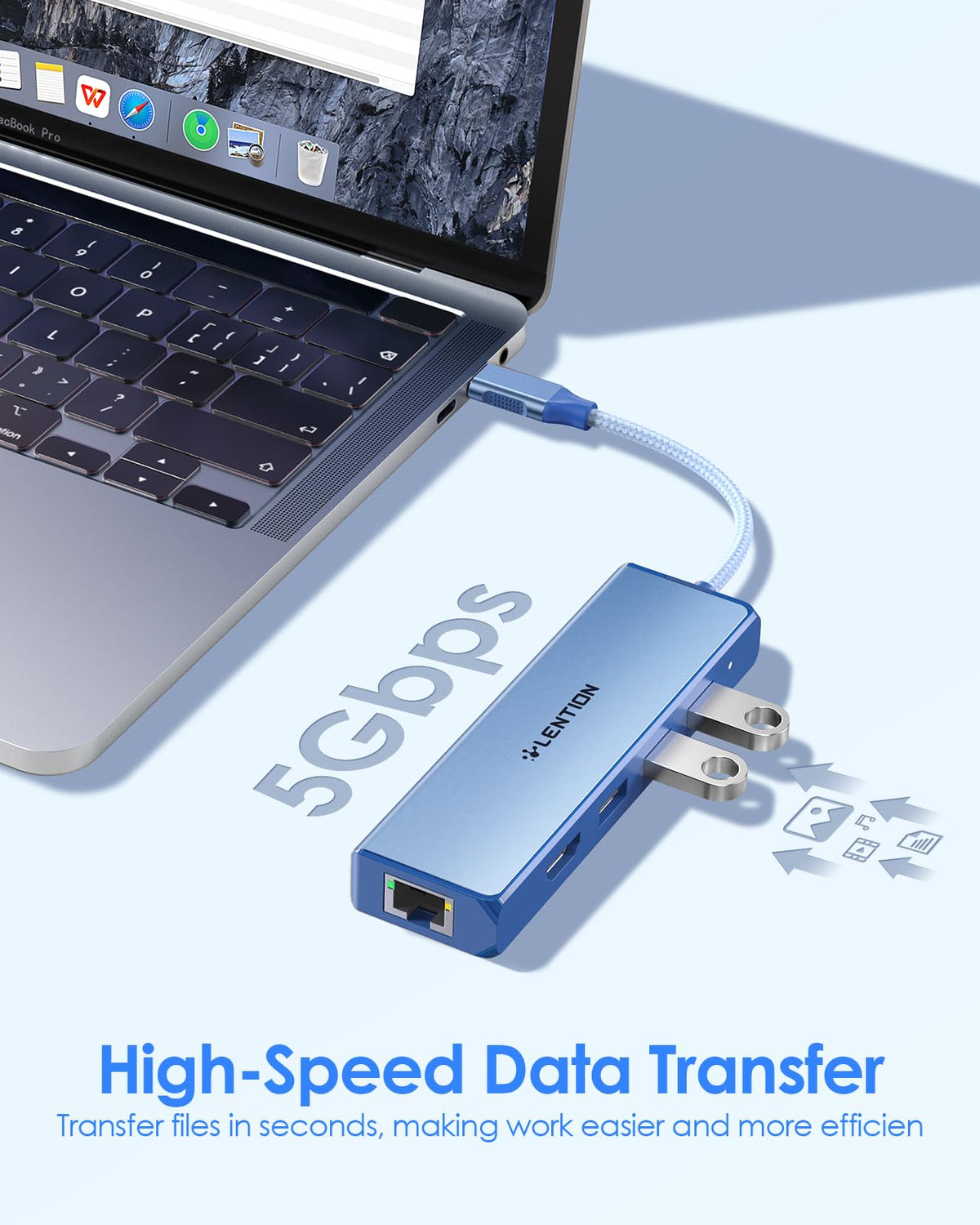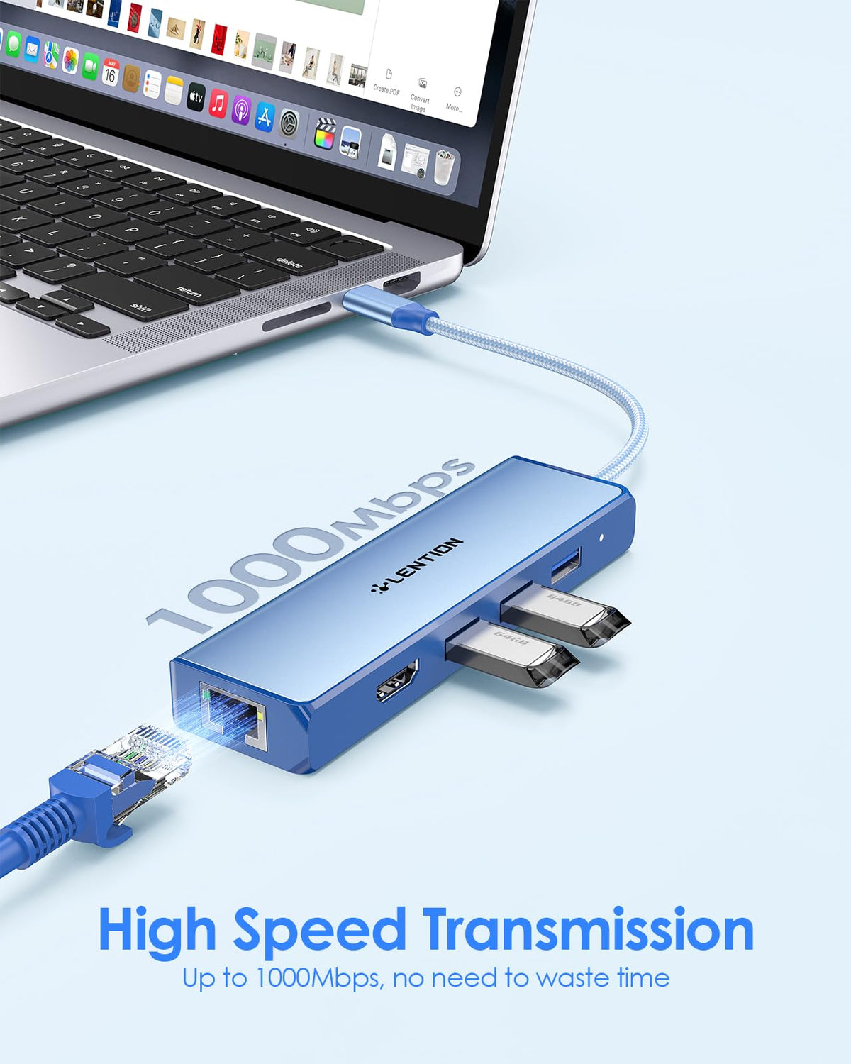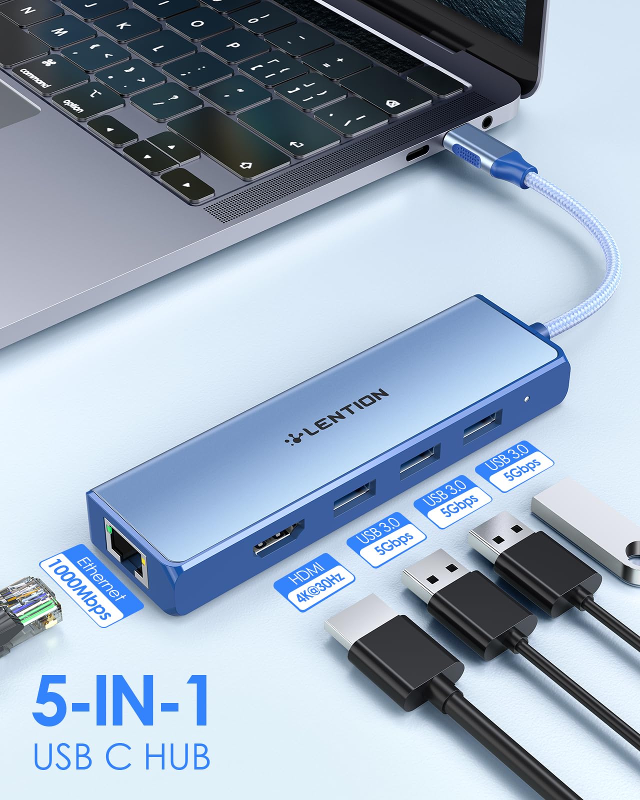 Lention Usb C Hub With A Gigabit Ethernet Port, 4K Hdmi Display, 3 Usb-A Usb 3.0 Ports For Macbook Pro, Macbook Air, Dell, Lenovo, Hp Laptops And More, Stable Driver Certified (C25, Blue)
