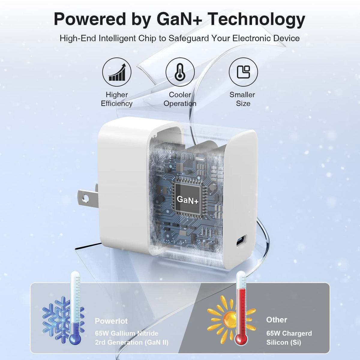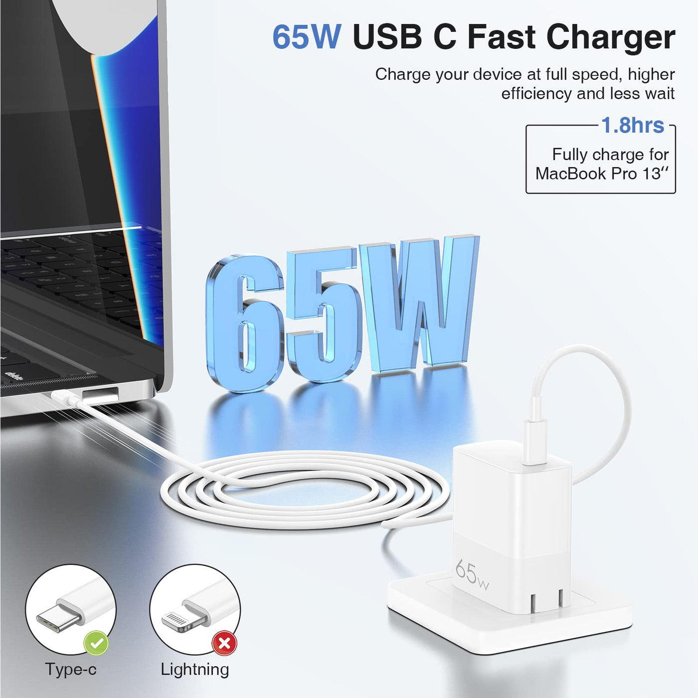 Mac Book Air Charger, 65W Usb C Charger Gan Fast Compact Foldable Adapter For Mac Book Pro/Air, Galaxy S21/S10, Dell Xps, Note 1