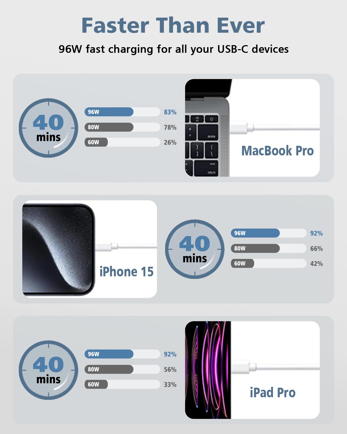 Mac Book Pro Charger 100W Usb C Charger Fast Charger For Mac Book Pro/Air Ipad Pro 12.9, 11 Inch 2020/2018 Samsung Galaxy And