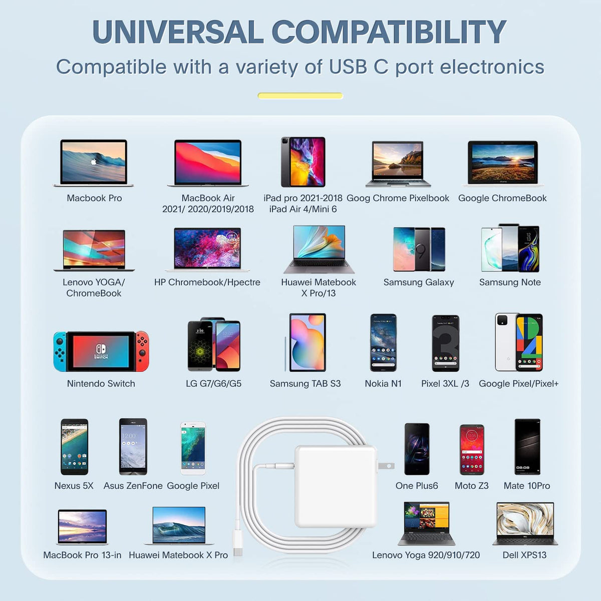 Mac Book Pro Charger 118W Power Adapter Compatible With Usb C Port Macbook Pro & Macbook Air 13, 14, 15, 16 Inch, New Ipad Pro