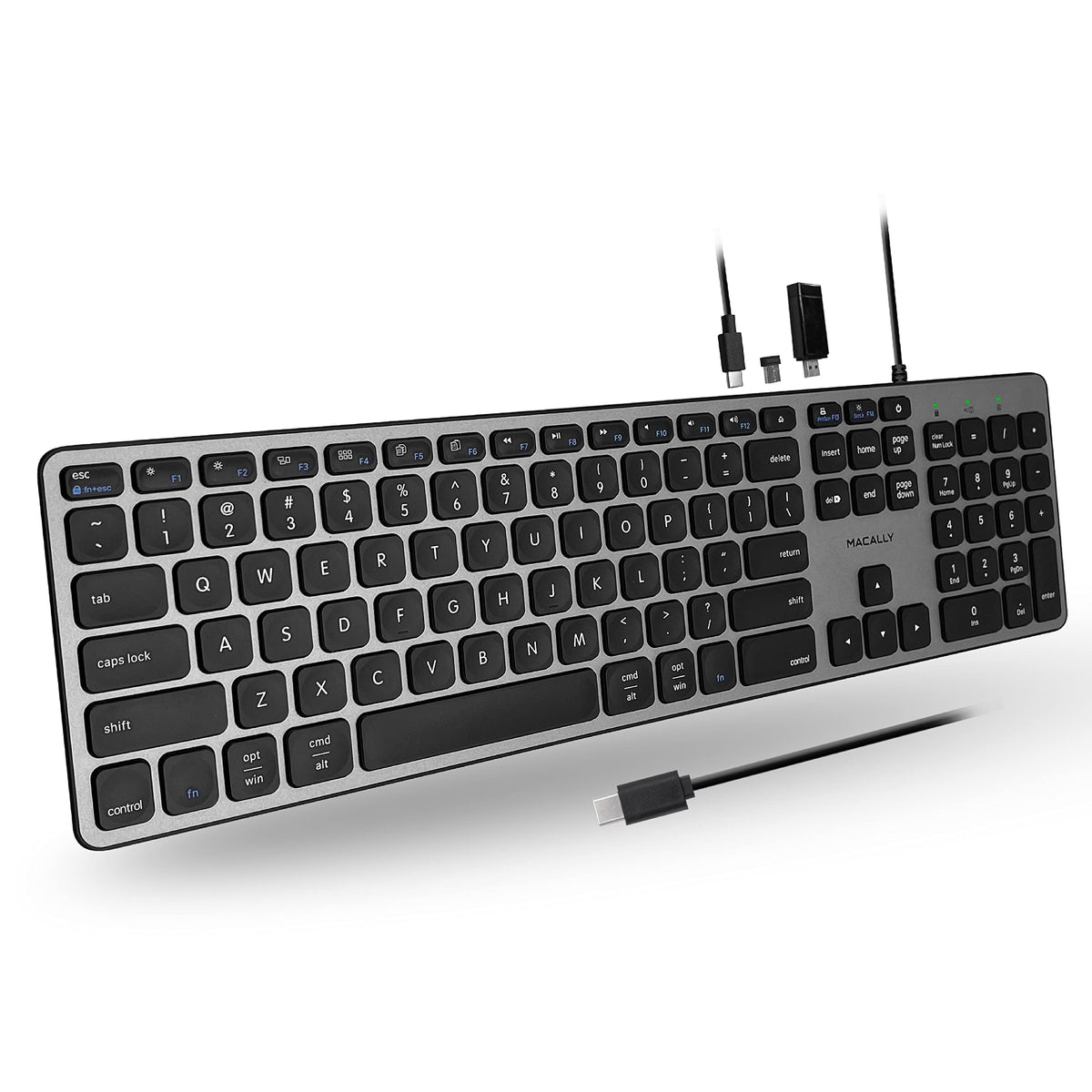 (3 Extra Ports For Your Devices): Conveniently Connect Up To 3 Devices Like A Mouse, Flash Drive, Or Webcam. Our Pc And Mac Compatible Keyboard Usb C Is Equipped With 2 Usb-A Ports And 1 Usb-C Port. | (Simple Usb-C Wired Connection): A Reliable Solution For Newer Gen Devices That Utilize Type C Ports. Plug And Play, Ready To Be Used As A Macbook Keyboard Or Imac Keyboard. | (Seamless Compatibility): All 107 Keys And 16 Shortcut Keys Of Our Mac Wired Keyboard Will Be Fully Functional On Mac, Pc, And Chrome. You'Ll Be Able To Complete Any Task Regardless Of Your Operating System. | (Offers The Whole Package): Space Gray Finish For A Touch Of Elegance, Low Profile Design, Quiet Scissor Switches, And An Integrated Typing Angle, Our Pc And Mac Keyboard Wired Delivers In Aesthetics And Practicality. | (What You'Ll Receive): At Macally Your Satisfaction Is Valued Tremendously, So Along With The Wired Mac Keyboard Usb C You'Ll Also Receive Lifetime Support, Up To 2 Years Of Warranty, And Easy Returns.
