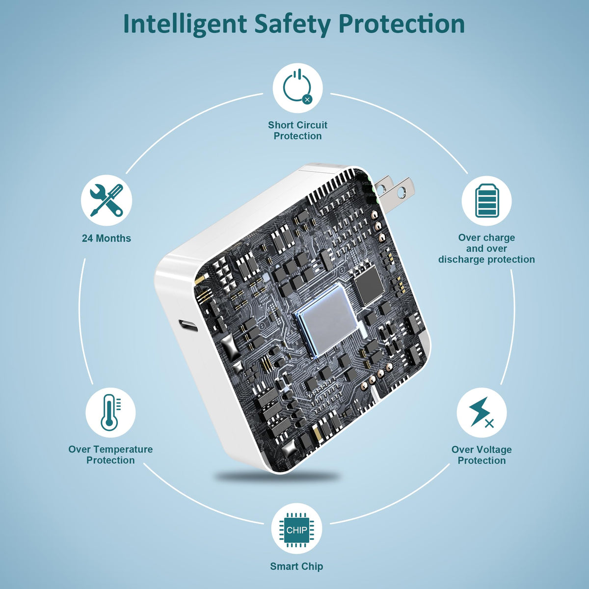 Q: Does this charger provide any safety features?A: Yes, the Mac Book 87W USB C Charger is designed with multiple safety features, including overcharge protection, short circuit protection, overload protection, and overheat protection, ensuring safe and reliable use.