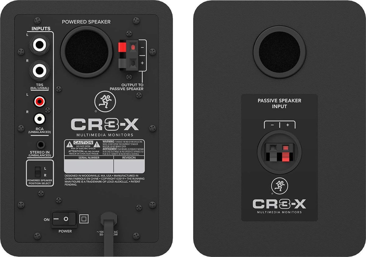Product Descriptioncr Series Creative Reference Multimedia Monitors Offer Studio-Quality Sound With Cosmetics That Compliment Any Desk Whether You�Re Making Music, Creating Content, Or Just Relaxing To Your Favorite Tunes. Cr3-X 3� Monitors Feature A Sleek Design With A Brushed-Metal Panel And Distinct Outline. Convenient Front Panel Headphone Out And Volume Control Make Daily Use Easy. Flexible Rear Panel Inputs Include Balanced 1/4' Trs, 1/8� Stereo, And Rca. High-Quality Cables Are Included In The Box To Get You Up And Running Quickly. Upgrade Your Listening Experience With Mackie Cr3-X Monitors.From The Manufacturercr Series Cr3-X - 3' Multimedia Monitors