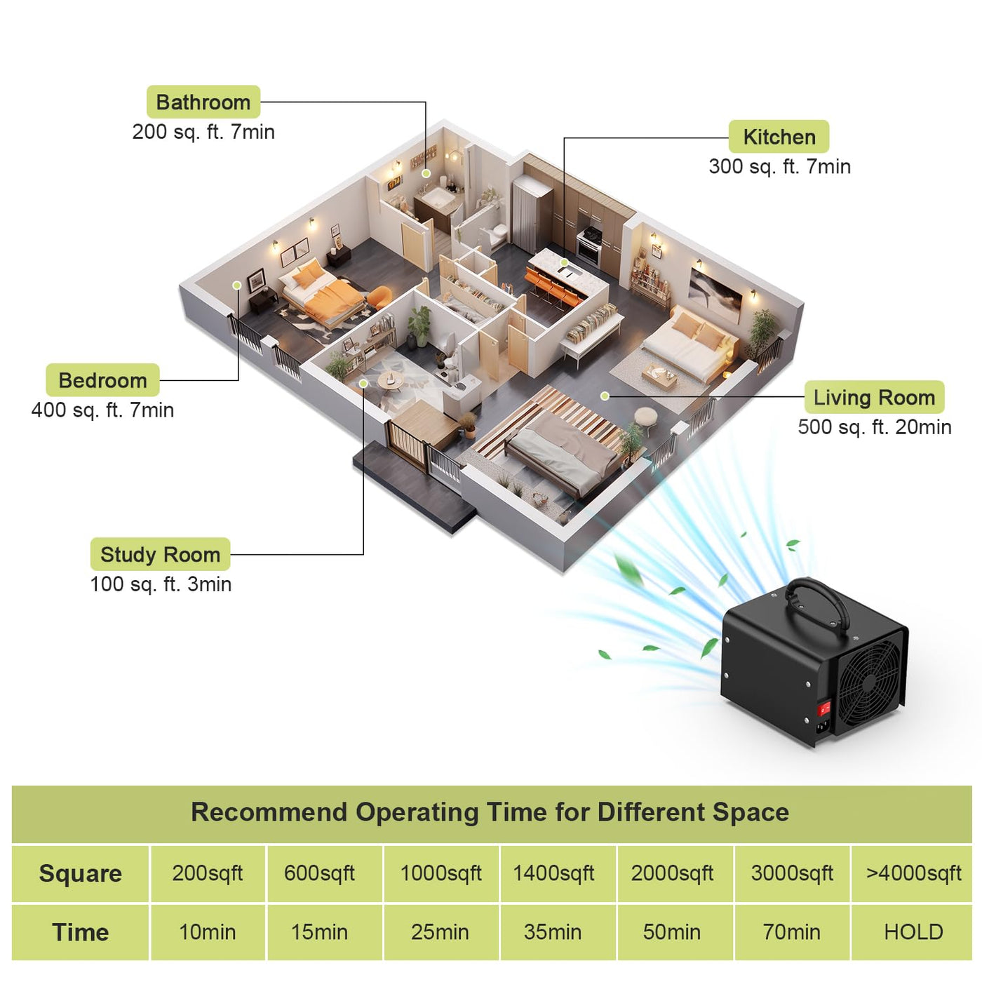 Maximum Output Of 45,000 Mg/H Is Suitable For Spaces Up To 6,000 Sq Ft | It Has A Life-Time Of Up To 8,000 Hours And Does Not Require Any Replacement Parts | It Is Suitable For Cars, Boats, Dumpsters, Kitchens, Bathrooms, Basements | It Effectively Cleans Odors From Cooking, Smoking, And Pets | If You Have Any Questions About Pre-Sales Or Post-Sales, Please Feel Free To Contact Us