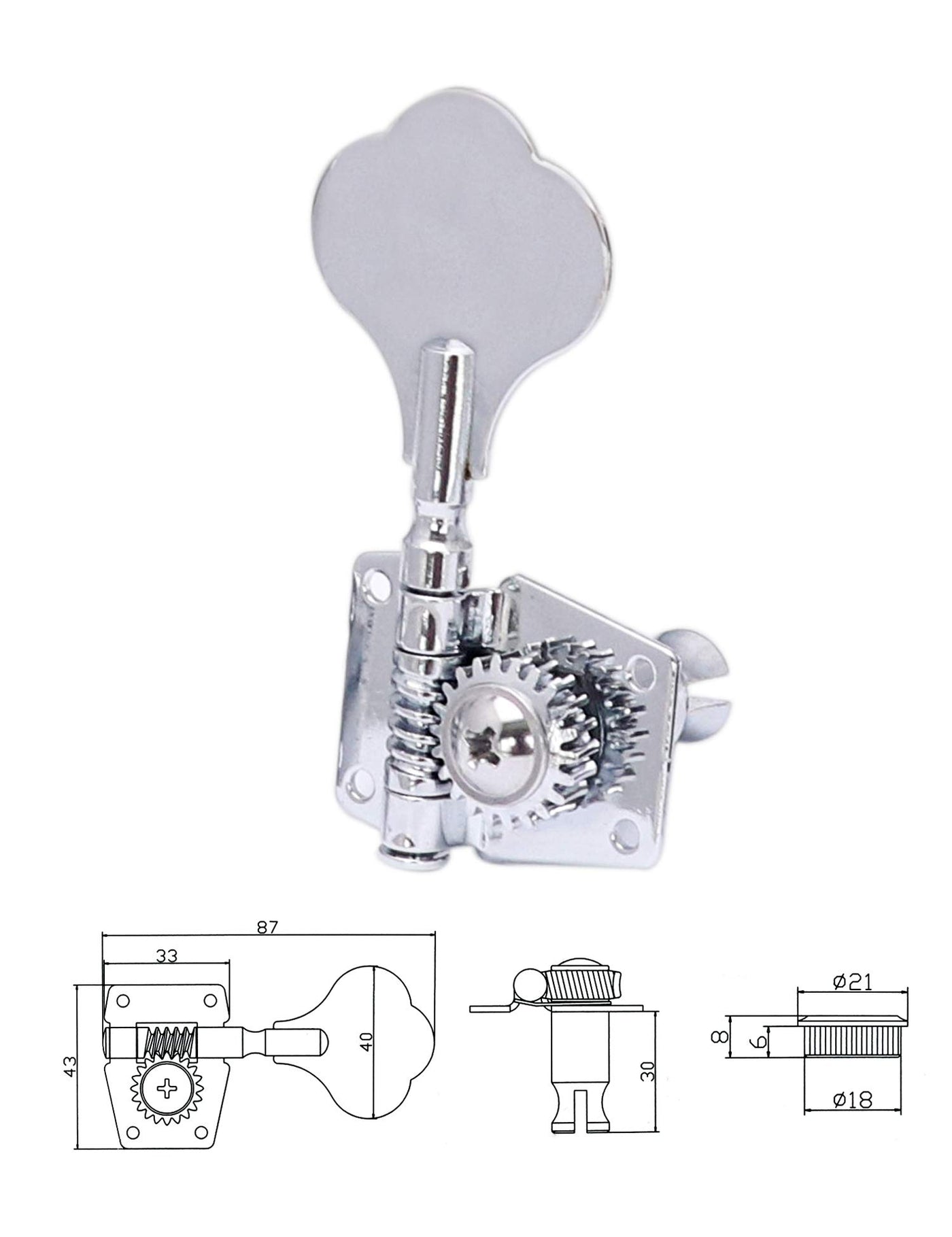 Product Description The Item Is A Set Of 4Pcs(2 Left 2 Right) Professional And Practical Open Gear Bass Tuning Pegs. They Are Mainly Made Of Durable Hard Zinc Alloy Material, And Great For 4 Strings Bass Tuning. They Are Quality Open Gear Machine Heads Which Are Used To Tune Up Your Bass. Also Great Replacement For Your Broken Or Old Bass Tuners! Feature * 100% Brand New And High Quality * This Is Set Of 4 Quality Vintage Chrome Open Bass Tuners. 2Pcs For Right And 2Pcs For Left. * Material: Durable Hard Zinc Alloy * Common Size, Gear Ratio 1:22, With Screws And Bushing. Full Set. Package Include 2L+2R X Bass Tuning Pegs 4 X Ferrules 16 X Screws Note Light Shooting And Different Displays May Cause The Color Of The Item In The Picture A Little Different From The Real Thing. The Measurement Allowed Error Is +/- 1-3Cm.