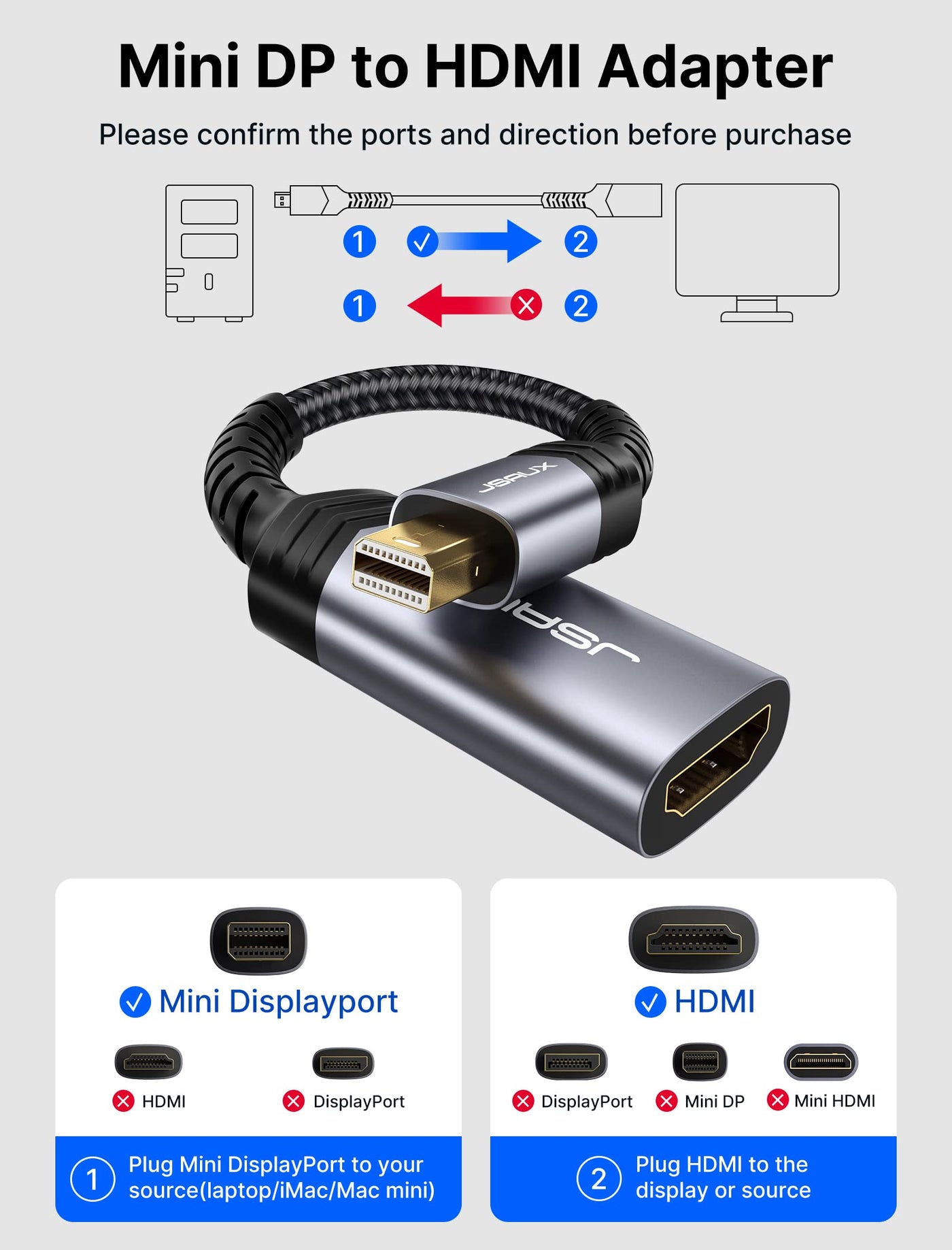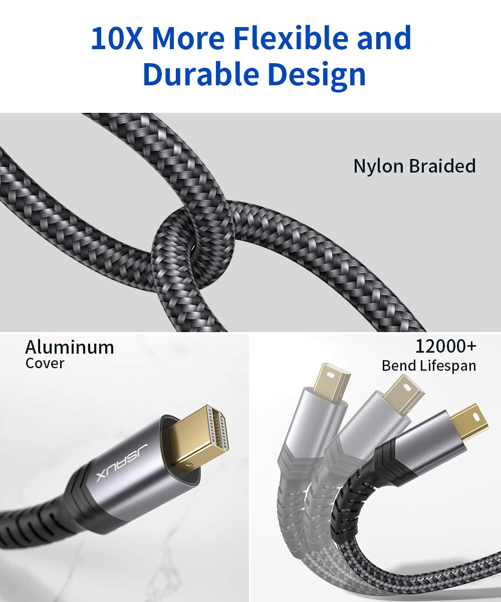 Mini Displayport To Hdmi Adapter, Jsaux Mini Dp (Thunderbolt) To Hdmi Adapter Nylon Braided Aluminum Shell Compatible With Macbo