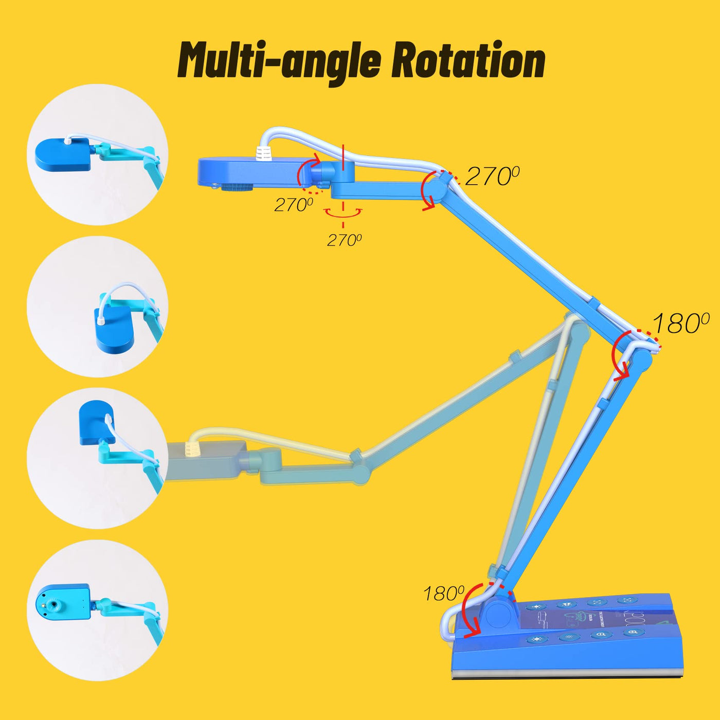 Q: What are the key features that make the Mirabox document camera ideal for teachers?A: The Mirabox document camera is designed with educators in mind, featuring a foldable design for easy portability, adjustable image reversal for video chats, and the capability to capture both 2D and 3D objects, making it perfect for classroom use.