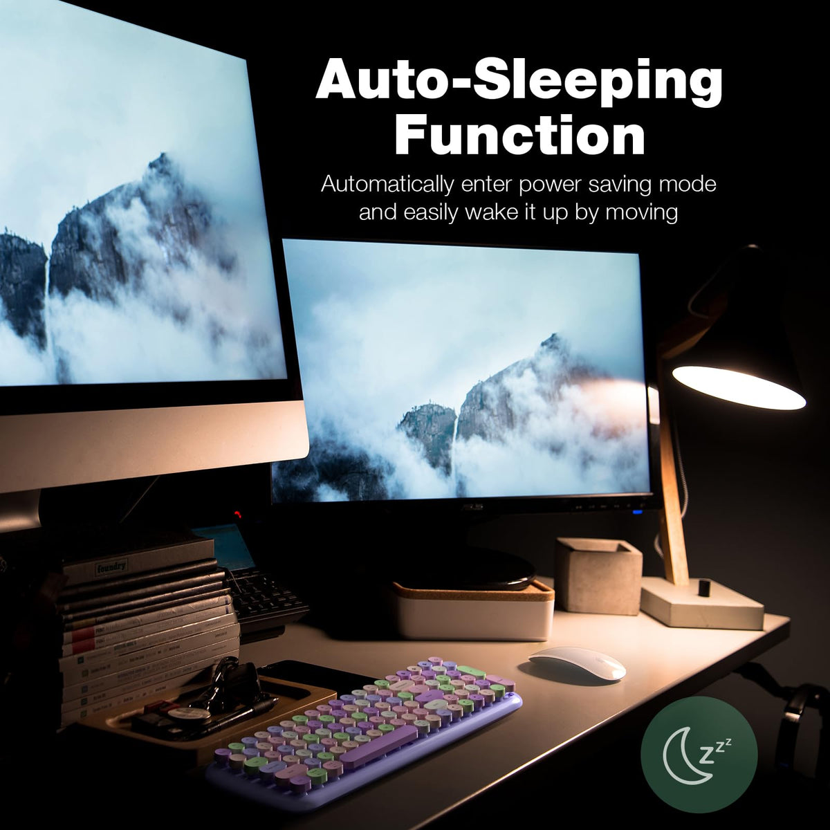 Q: How does the auto power-saving feature function?A: The MOFII Wireless Keyboard automatically enters power-save mode when not in use. Simply click any key or button to wake it up within seconds. Additionally, a low battery indication light alerts you when it's time to replace the battery.