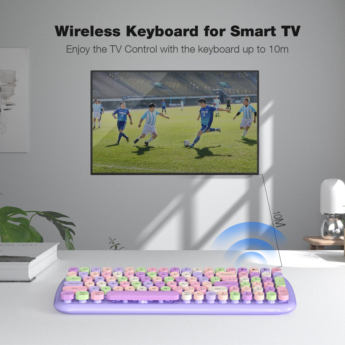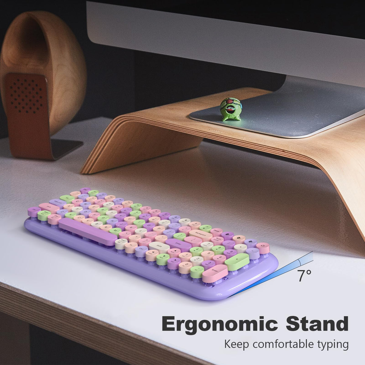 Mofii Wireless Bluetooth Keyboard For Mac, Ipad, Iphone, Pc, Laptop & Android, Connect Up To 3 Devices Simultaneously, Portable 100-Key Typewriter Retro Round Keycaps Keyboard Purple Colorful