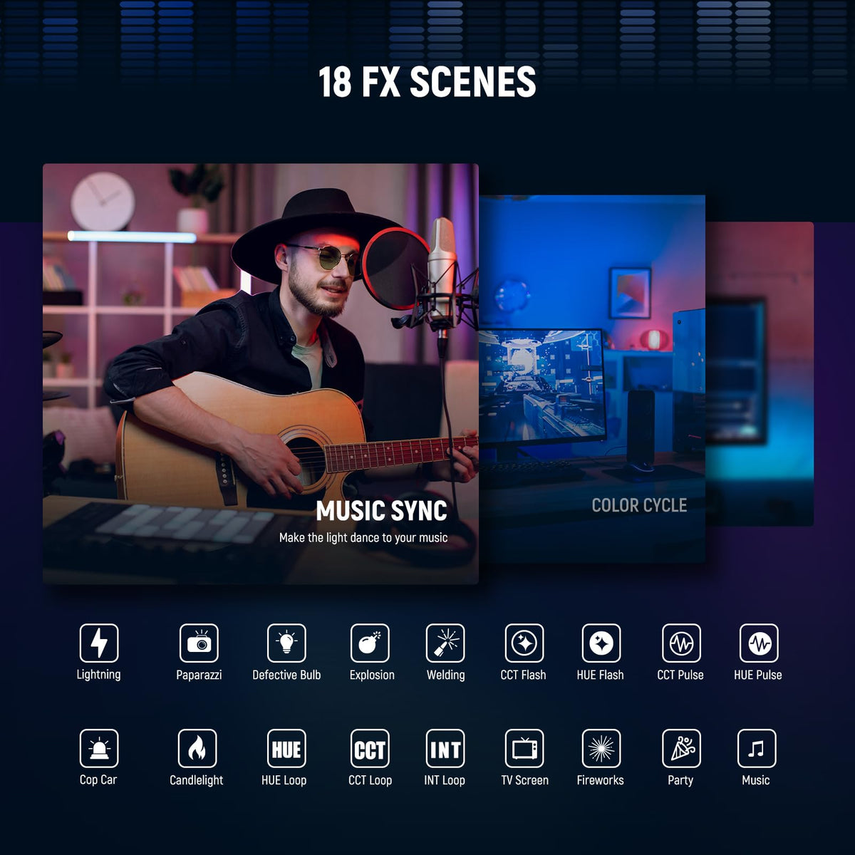 Q: Is the NEEWER GL1C suitable for live streaming and content creation?A: Absolutely! The NEEWER GL1C is designed specifically for live streamers and content creators. Its edge-emitting technology provides soft, flicker-free lighting with a high CRI of 97+, ensuring accurate color reproduction. The 18 FX scene effects, including Music Sync mode, enhance the visual experience during streaming.