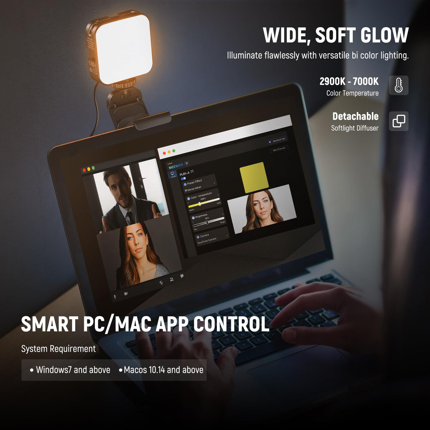 Q: What are the main features of the NEEWER PL81 Pro LED Streaming Light?A: The NEEWER PL81 Pro LED Streaming Light offers ultra-bright illumination with adjustable color temperatures ranging from 2900K to 7000K, making it ideal for various lighting scenarios. It is 0-100% dimmable and can be controlled via the NEEWER Control Center app on both PC and Mac, providing flexibility for users during video conferences, streaming, and content creation.