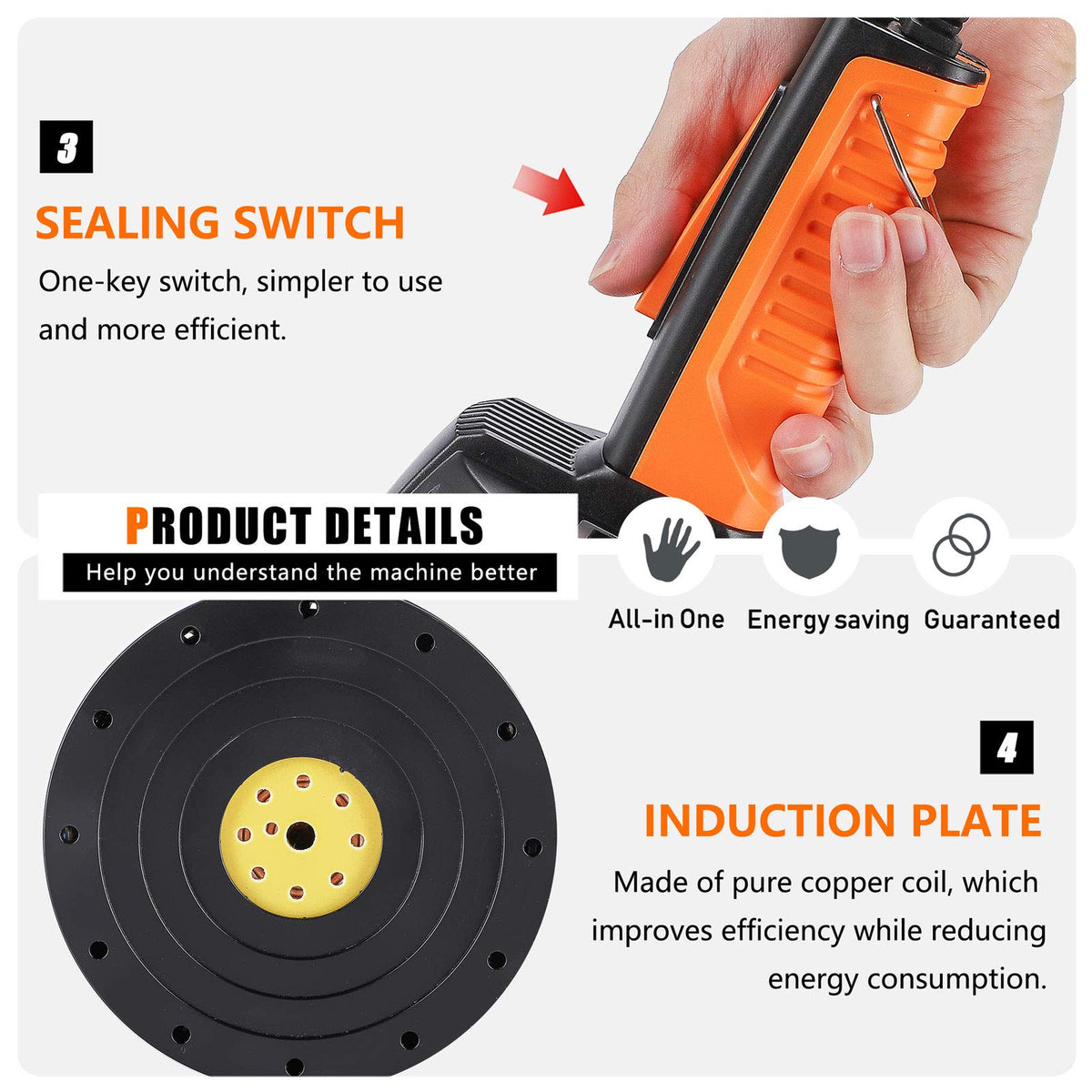 ?Basic Parameters?Sealing Range: 0.79�-3.15� (20-80Mm) | Power Range: 800W-1200W | Time Adjustment Range: 0.1-5.9S | Applicable Bottle Cap Type: Flat Cap | Perfect For Sealing Medicines, Food, And Beverages, Meeting Most Customers� Needs. Ideal As An Automatic Induction Sealer For Various Non-Metal Packaging Tasks.|?User-Friendly Operation?Simply Press The Power Switch, Adjust The Power And Time According To The Sealing Diameter. Then Place The Machine Over The Bottle Cap And Press The Switch On The Handle Top To Seal. A Great Choice For Quick And Easy Sealing In Daily Use.|?Portable & Comfortable?Weighing Approximately 1.6 Pounds, This Handheld Induction Sealer Is Incredibly Portable. The Ergonomic Handle Design Ensures Comfortable Long-Term Use, Allowing You To Seal Non-Metal Containers For Different Products Like Drinks And Cosmetics With Ease.|?More Details?The Induction Plate Of This Induction Cap Sealer Is Made Of Pure Copper Wire, Which Improves Efficiency While Reducing Energy Consumption. The All-Around Cooling Holes Provide Faster Ventilation And Heat Dissipation, Protecting The Sealer From Overheating.|?Wide Application?This Induction Sealer Is Widely Applicable In Pharmaceutical, Chemical, Food, Beverage, And Cosmetic Industries. It�S Suitable For Aluminum Foil Sealing Of Non-Metal Packaging Containers.|Note: Remember To Prepare Your Own Aluminum Foil Or Lined Caps, And Ensure Bottles And Caps Are Non-Metal.