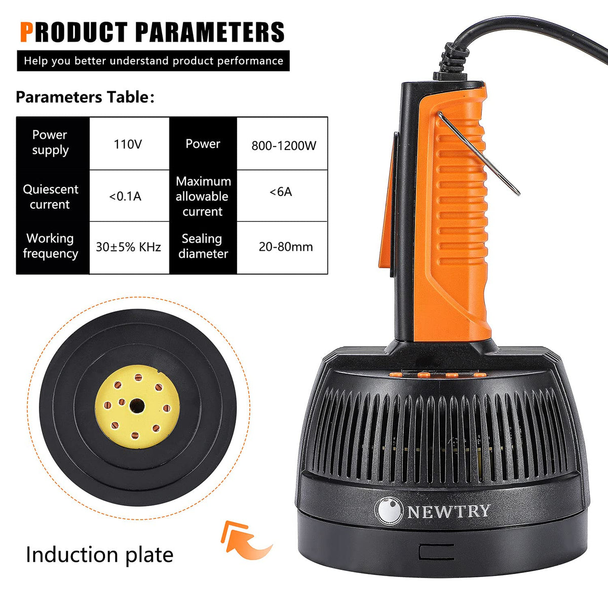 Newtry Handheld Induction Sealer 20 80Mm Heat Bottle Cap Sealing Machine Power & Time Adjustable For Plastic Glass Bottles Caps(110V)